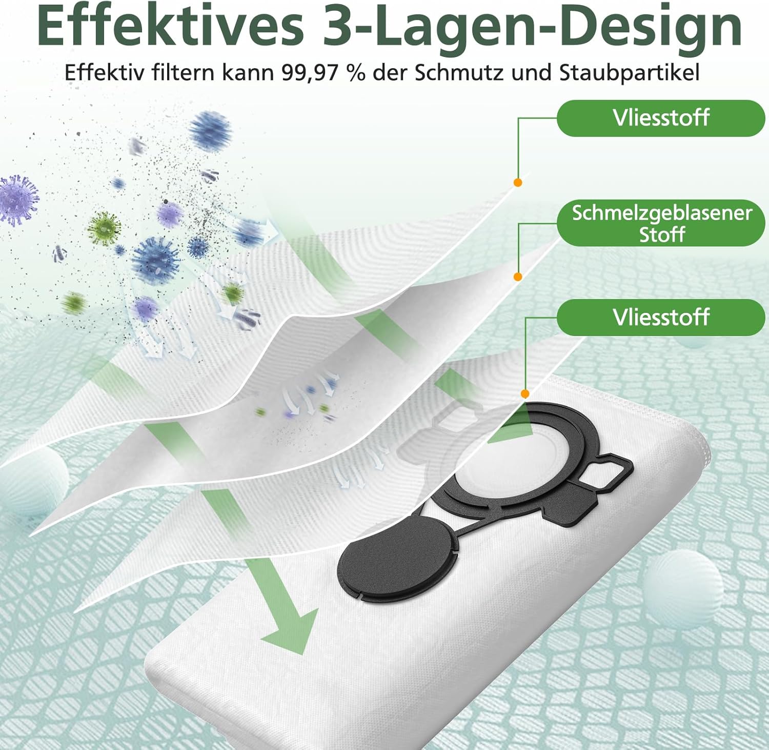 - 【Hervorragende Filtrationsleistung】Staubsaugerbeutel für für Makita vc2512L verfügt über 3-stufige Filterfunktion,aus 2 schicht einem Vliesstoff und 1 schicht einer feinen schmelzgeblasene Faserfilterschicht ,kann effektiv filtern 99,97 % der