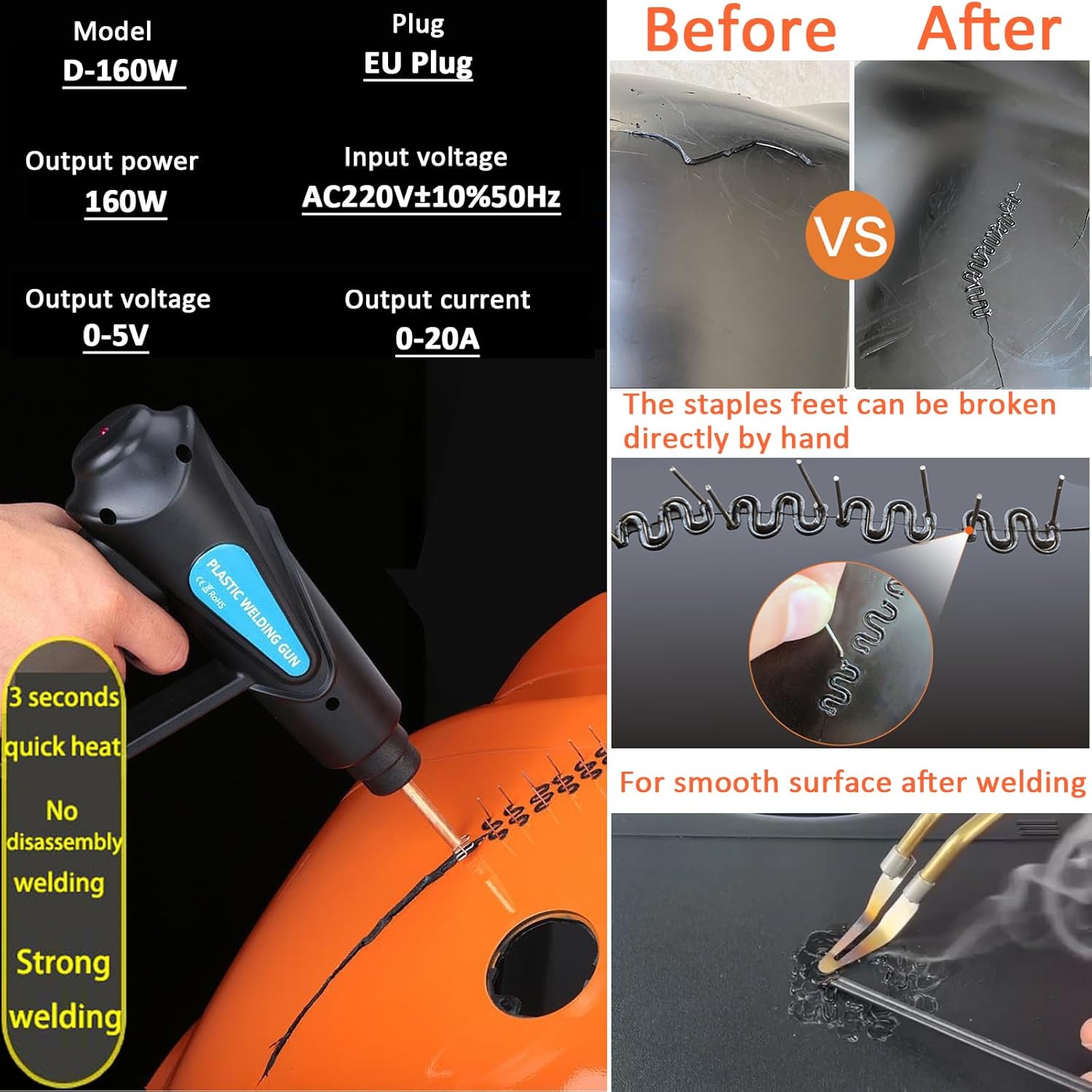 - 【Breite Anwendung】Das Kunststoffschweissgerät kann die meisten rissigen und beschädigten Kunststoffteile reparieren, schweissen, verstärken, einschliesslich Auto-Stossstange, Armaturenbrett, Lampenhalter, Kunststoffring, Kühler, Kotflügel,