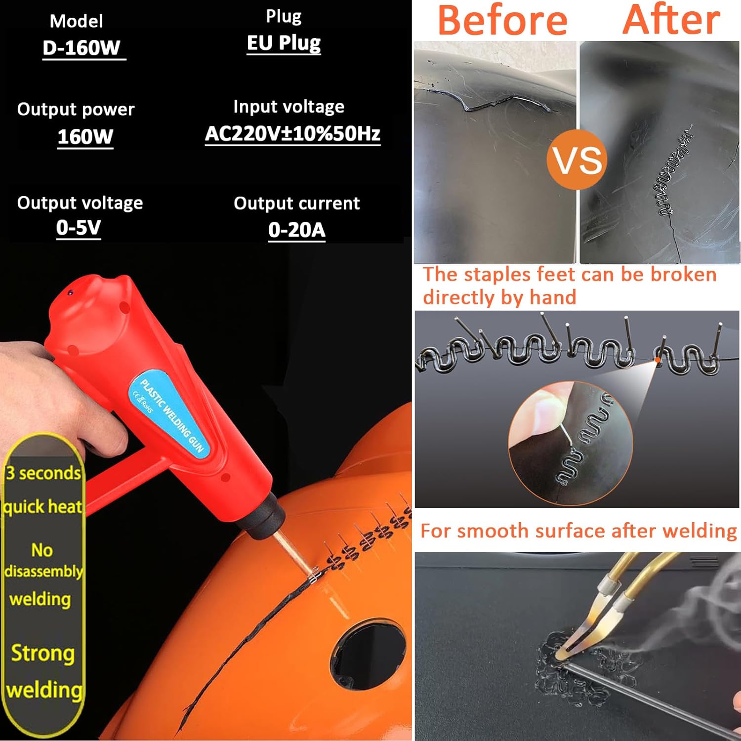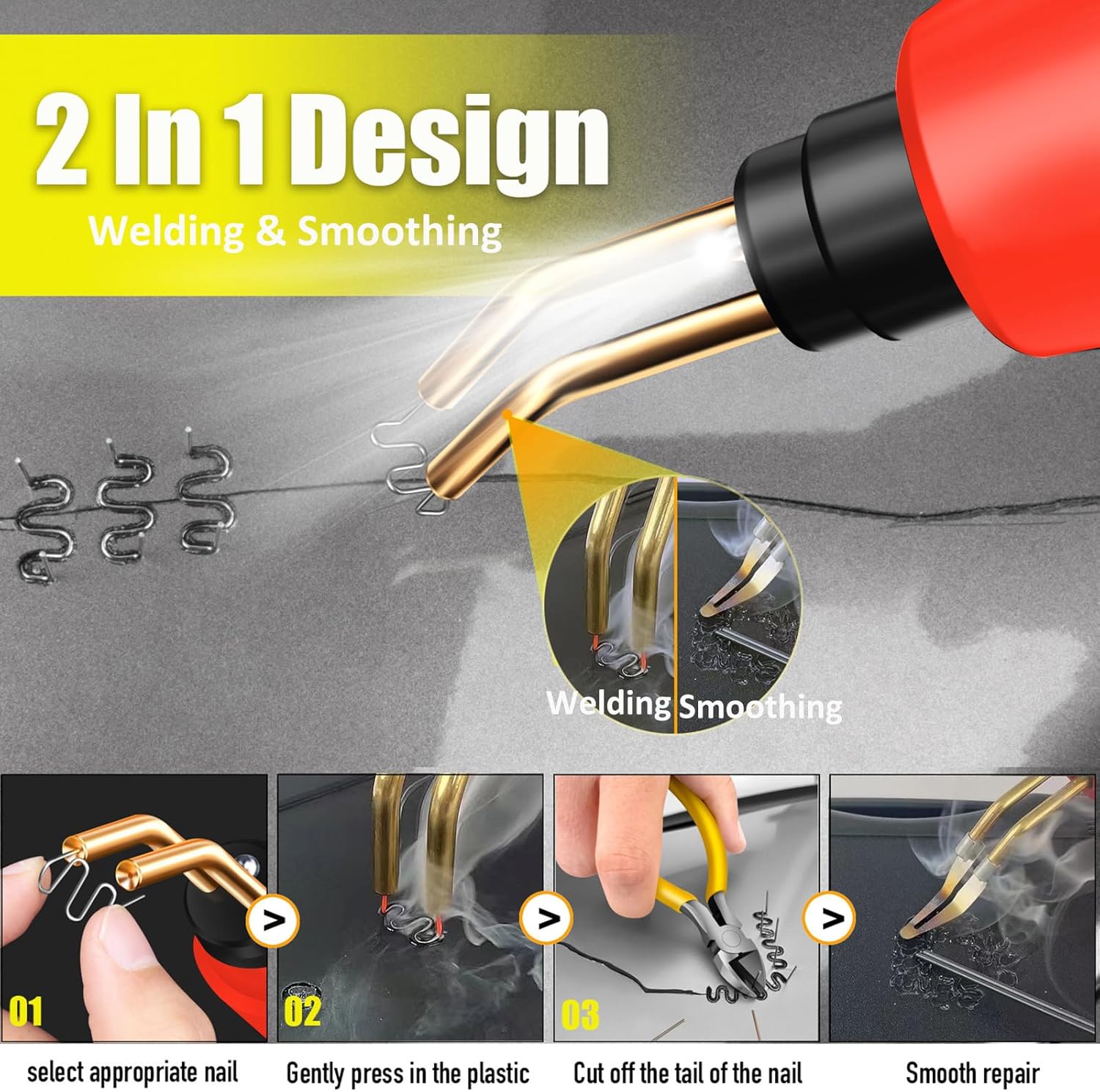 • 【Breite Anwendung】Das Kunststoffschweissgerät kann die meisten rissigen und beschädigten Kunststoffteile reparieren, schweissen, verstärken, einschliesslich Auto-Stossstange, Armaturenbrett, Lampenhalter, Kunststoffring, Kühler, Kotflügel,
