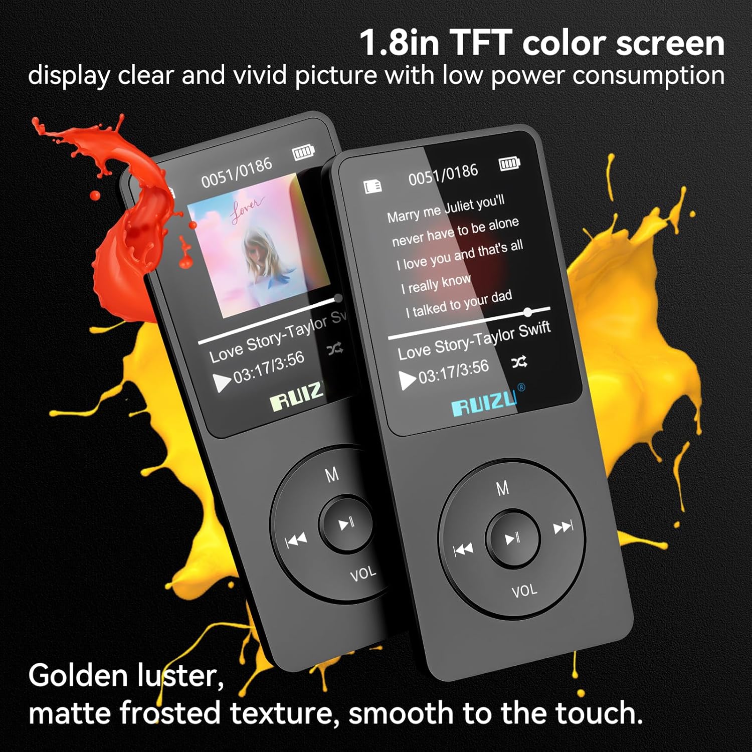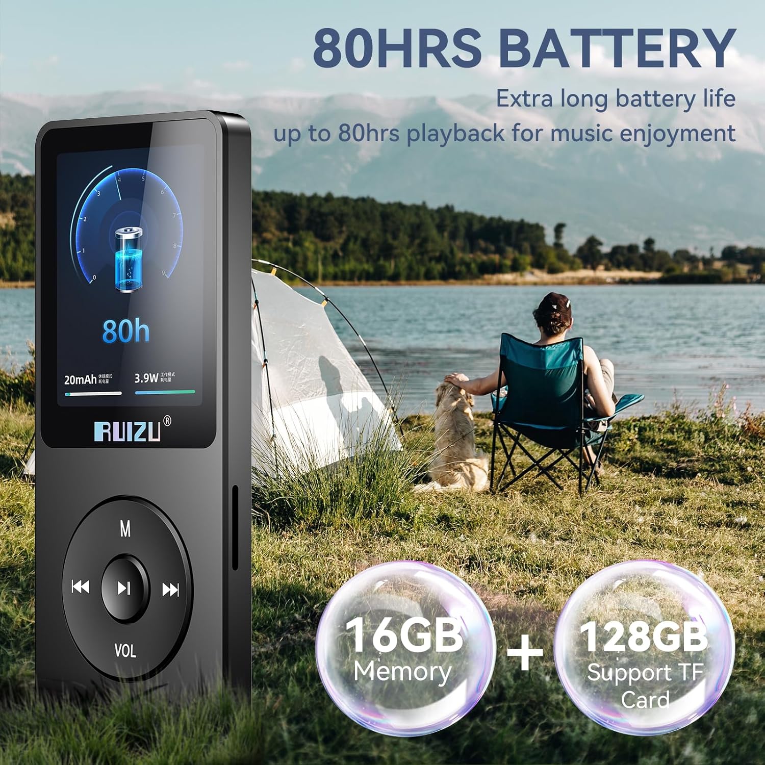 16GB MP3 Player mit Bluetooth 5.3, Ultraleicht (30 Gramm), bis zu 80 Stunden Akkulaufzeit, 1.8-Zoll-