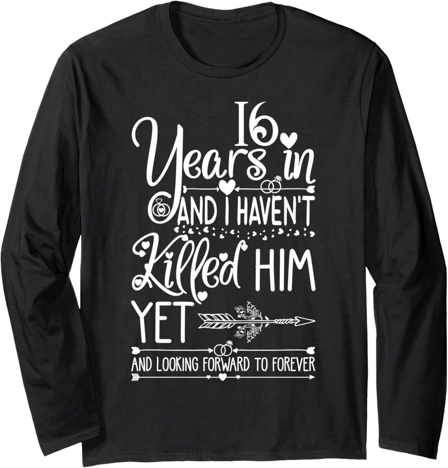 PRODUKTBESCHREIBUNGEN I've been married for 16 years and I haven't killed him yet - funny 16th wedding anniversary gifts for her cotton, valentine wedding humor clothing, and sarcastic apparel outfits for married women, couples, and the epic wife celebration ceremony party. I survived 16 years of marriage and I am looking forward to forever - happy wedding anniversary gifts for wife, couple, girlfriend, married girl, spouse, or heroic wife who is 16 years in, for a family who adores jokes, puns, messages, and sarcasm quotes. Mehr