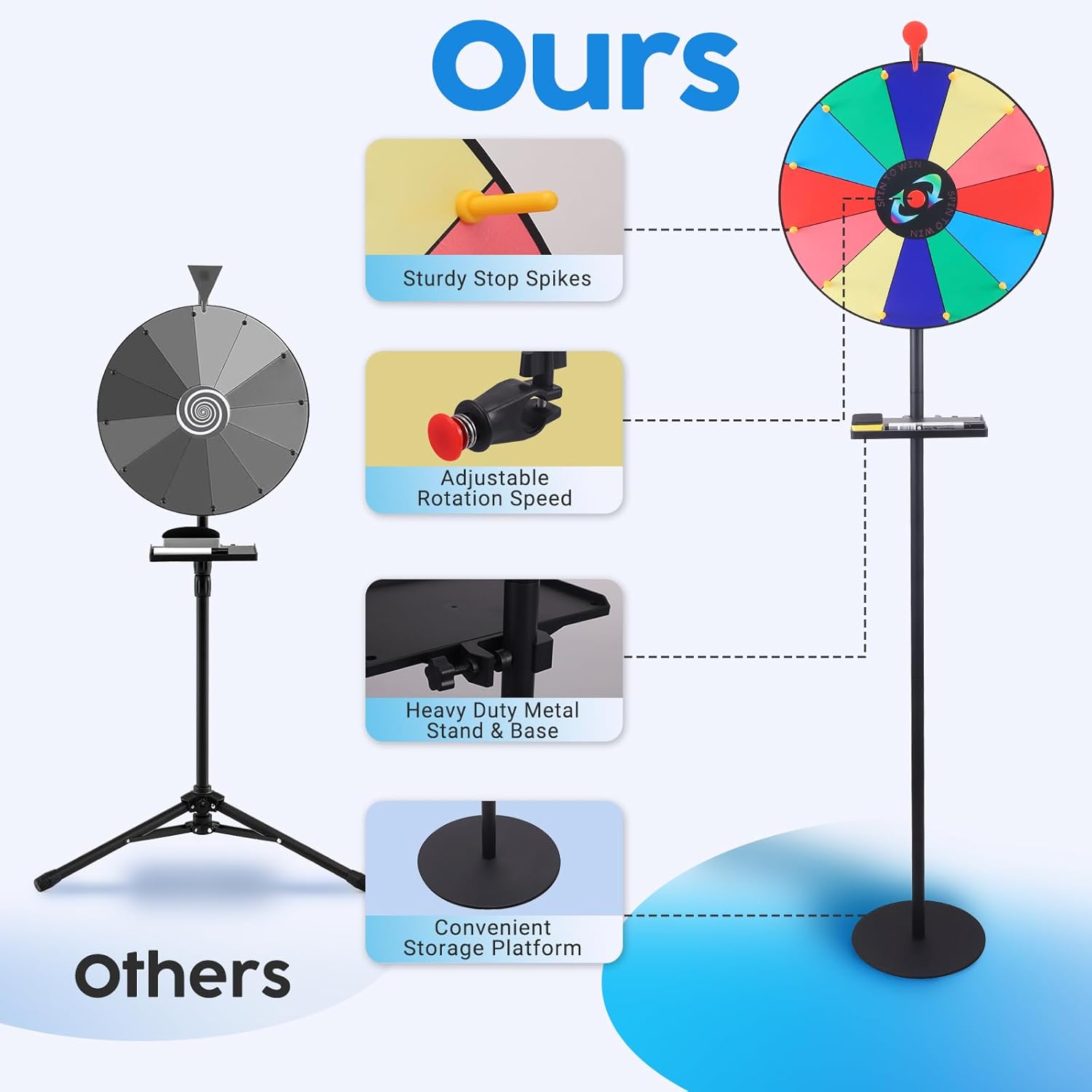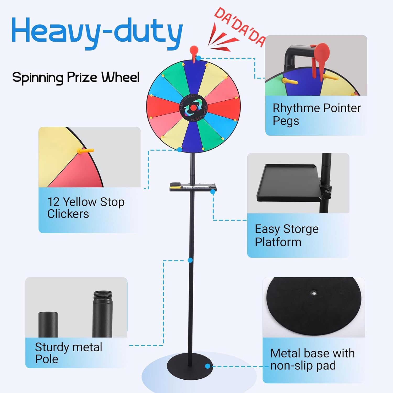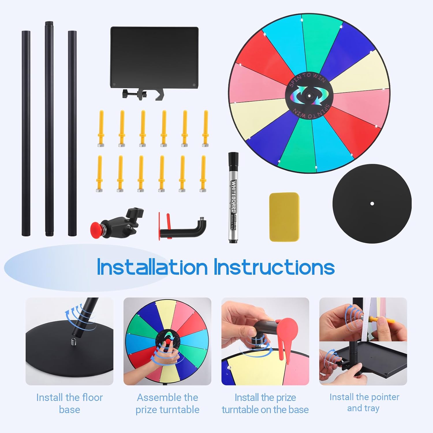 - 【Höhenverstellbar & Flexibel】Glücksrad zum drehen mit Bodenständer ermöglicht eine einfache Höhenverstellung – perfekt für Kinder und Erwachsene. Ideal für Partys, Klassenzimmer oder Firmenveranstaltungen.