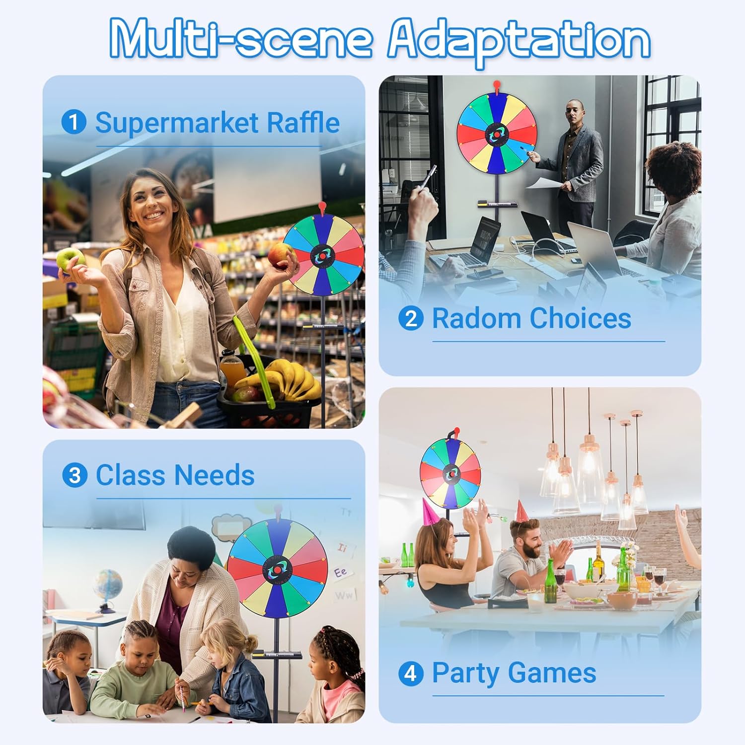 - 【Vielseitig einsetzbar】 Ob Kindergeburtstag, Firmenfeier, Schulfest oder Werbeaktion – dieses gluecksrad gluecksrad ist vielseitig einsetzbar. Perfekt für Spiele, Verlosungen oder interaktive Entscheidungen in Gruppen.