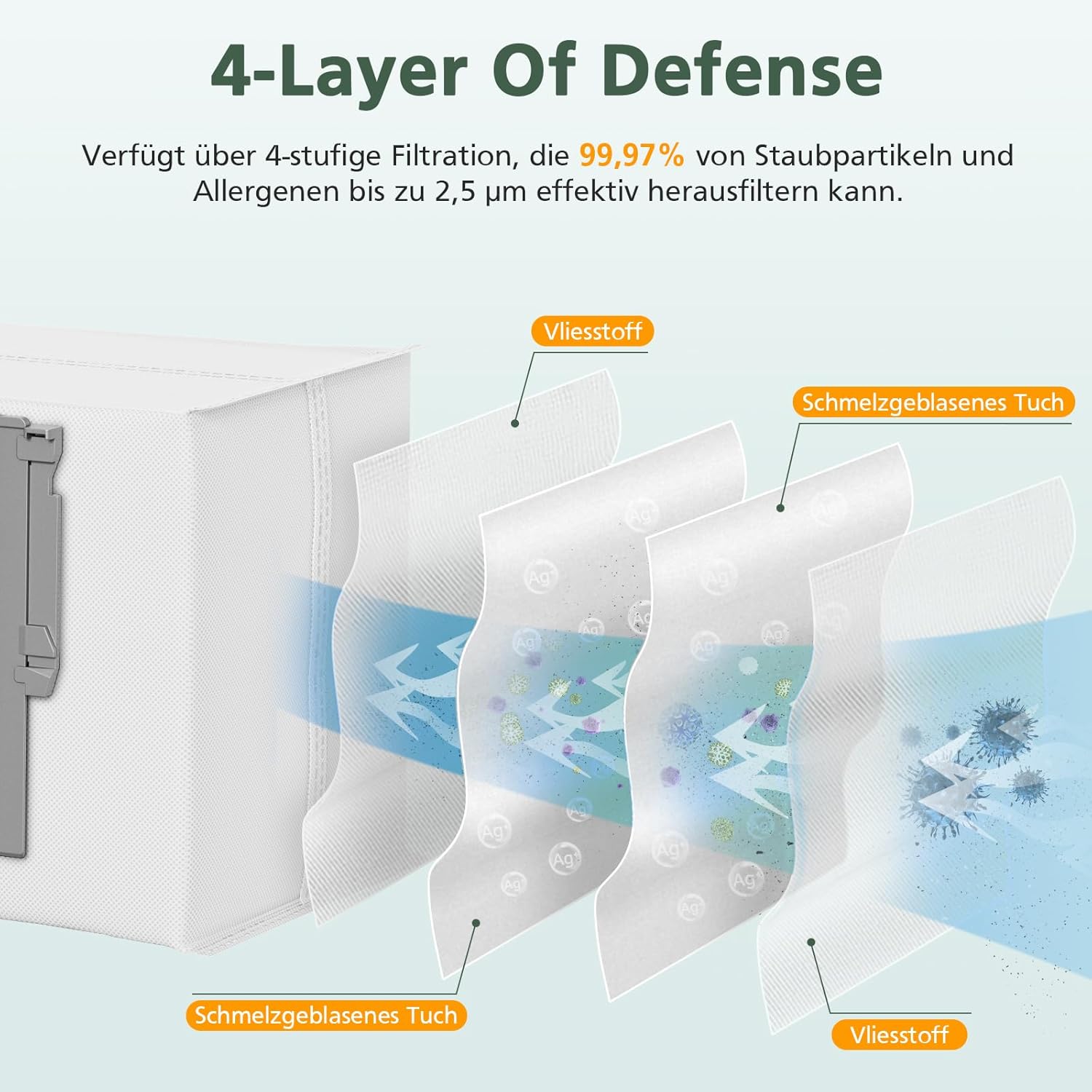 • 【Hepa-Filter & Seitenbürste】Der HEPA Filter besteht aus hochfesten und umweltfreundlichen Materialien, die 99% Schmutz, Staub, Allergene, etc. entfernen können, einfach zu ersetzen & Waschbar.Langlebige Silikagel-Seitenbürste,haltbarer als andere