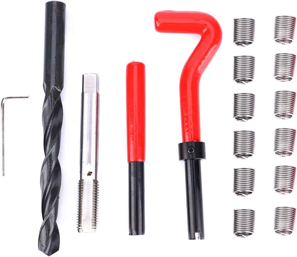 Oumefar 17Pcs Edelstahl-Nachfädler-Gewindebohrungssatz M12x1 5 Gewindeeinsatz-Kit Gewindereparaturwe