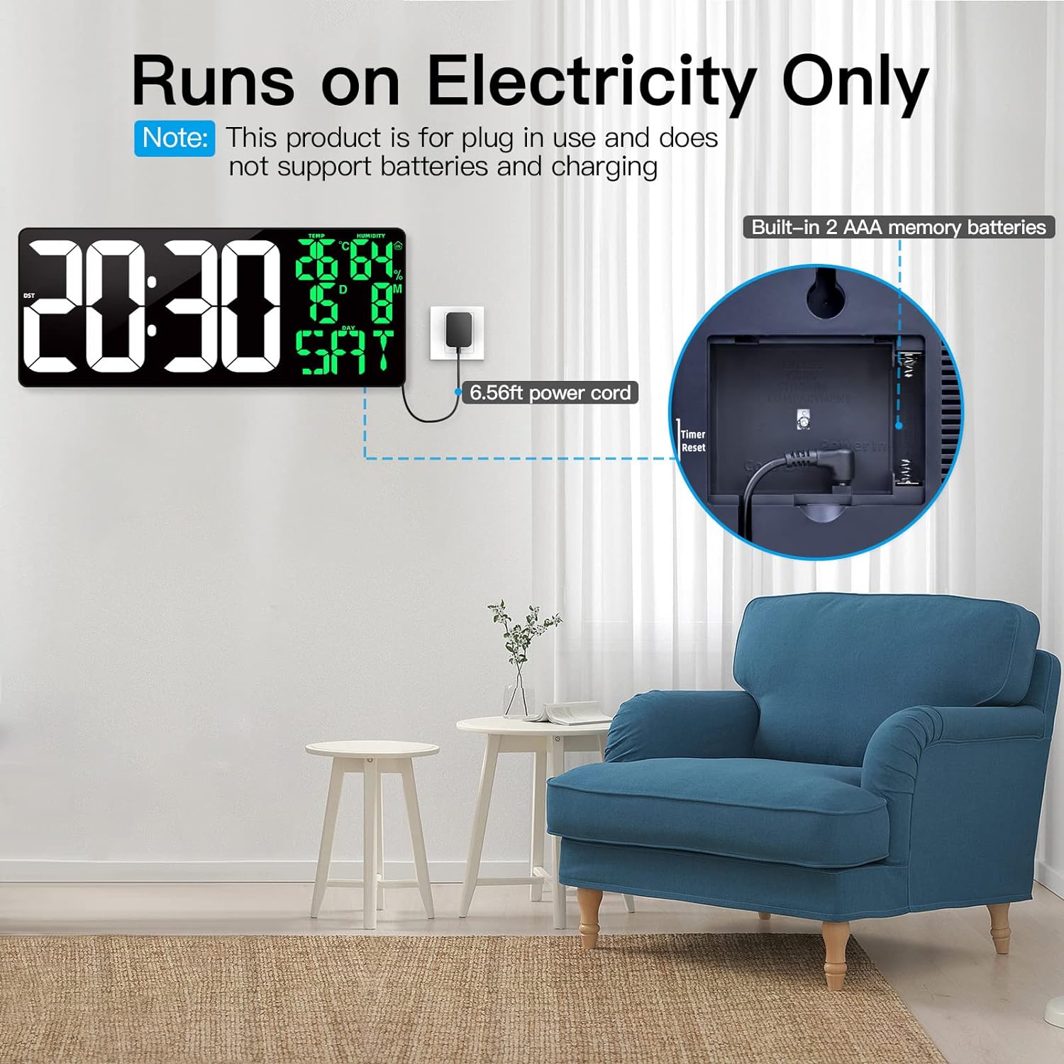 • 【AUTO/MANUELLES Dimmen & Sommerzeit】 --- Die grosse digitale Wanduhr verfügt über eine 4-stufig einstellbare Helligkeitsanzeige. Sie können die Digitaluhr manuell mit der Fernbedienung auf eine angenehme Helligkeit einstellen. Diese