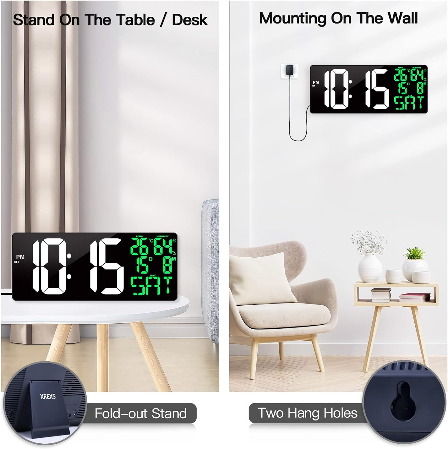 XREXS 18'' grosse Digitale Wanduhr mit Fernbedienung, automatisch dimmbare Digitaluhr mit grossem Di