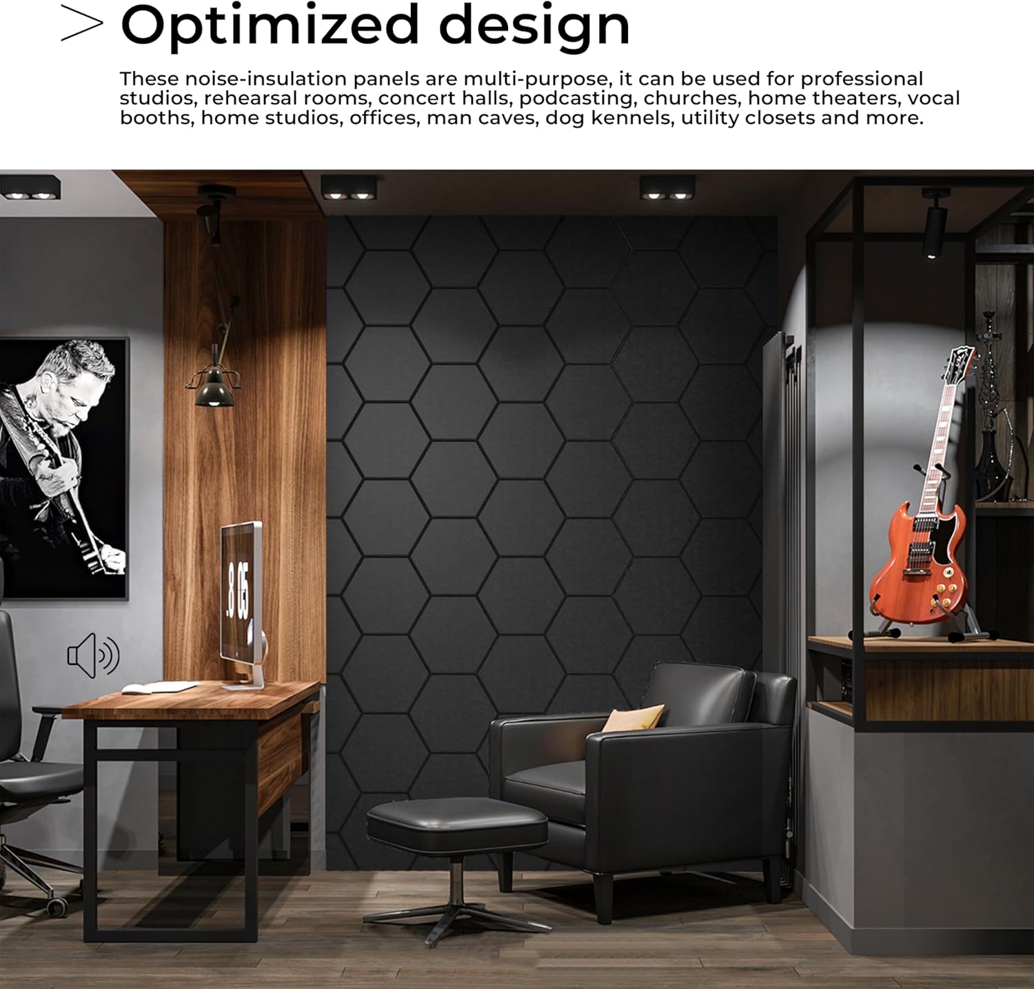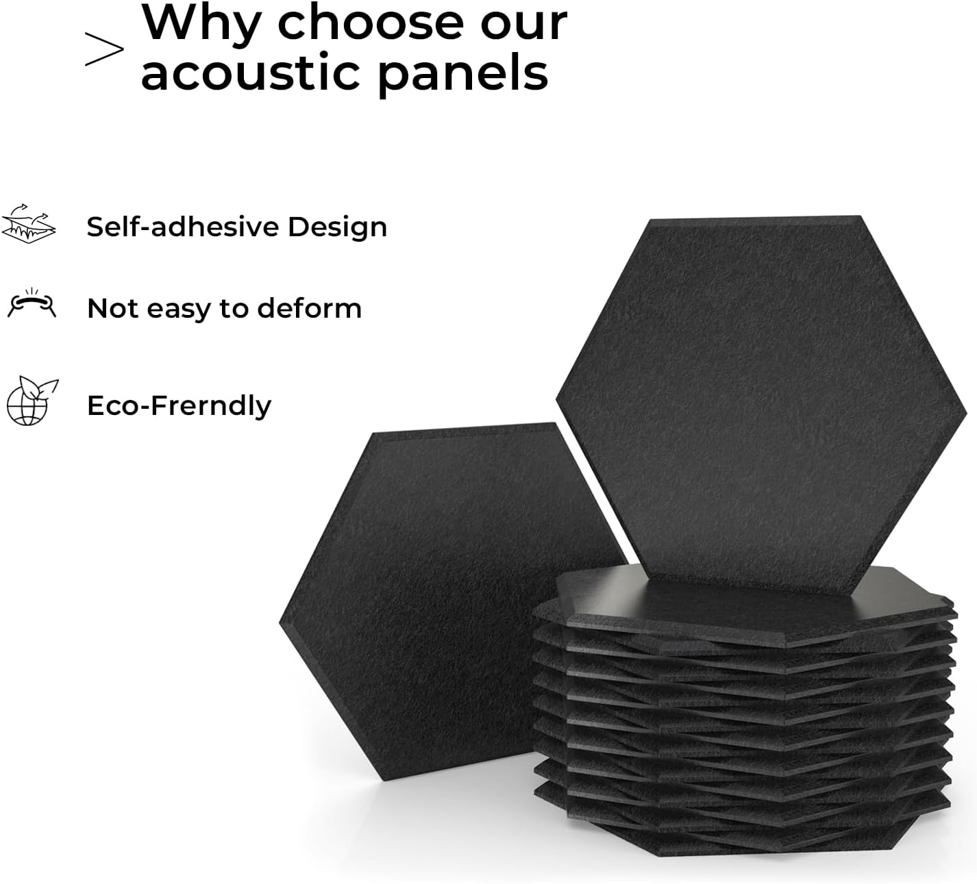 - Modernes Design – Die stilvolle sechseckige Form wertet jeden Raum auf und bietet gleichzeitig eine effektive akustische Behandlung.