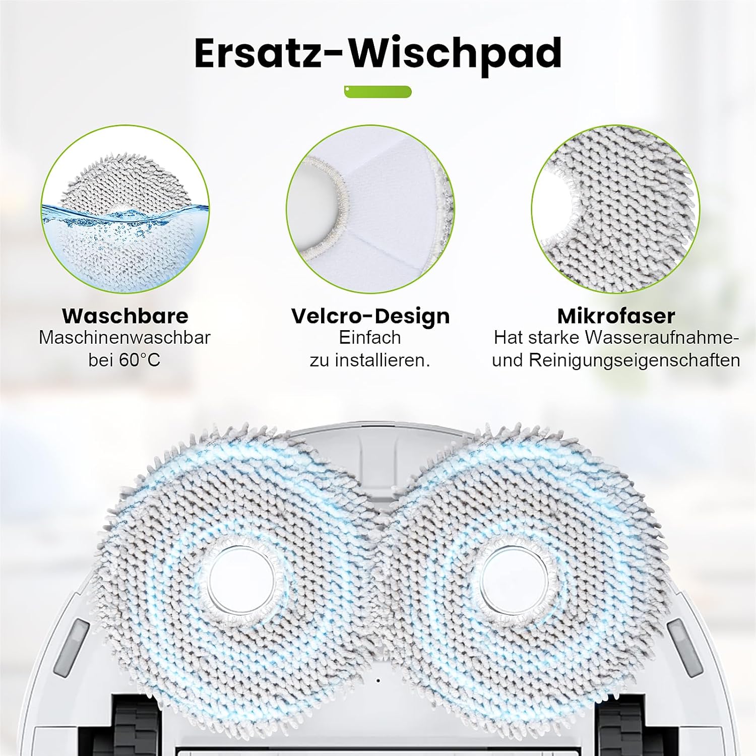 • 【Waschbare Wischtuch】: Der Wischpads besteht aus hochwertiger Mikrofaser, verfügt über hervorragende Reinigungs- und Wasseraufnahmeeigenschaften und kann zur Reinigung aller Arten von Böden verwendet werden.