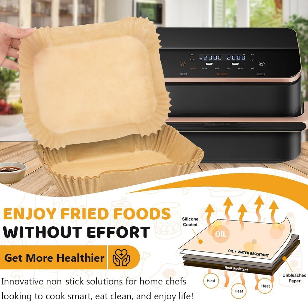 - PERFEKTE GRÖSSE: Kein Schneiden oder Falten erforderlich! Diese vorgefertigten backpapier airfryer passen perfekt in Ihren cosori dual blaze twinfry 10l. Legen Sie sie einfach in Ihren Luftfrittierer und werfen Sie sie nach Gebrauch weg - die ultimative