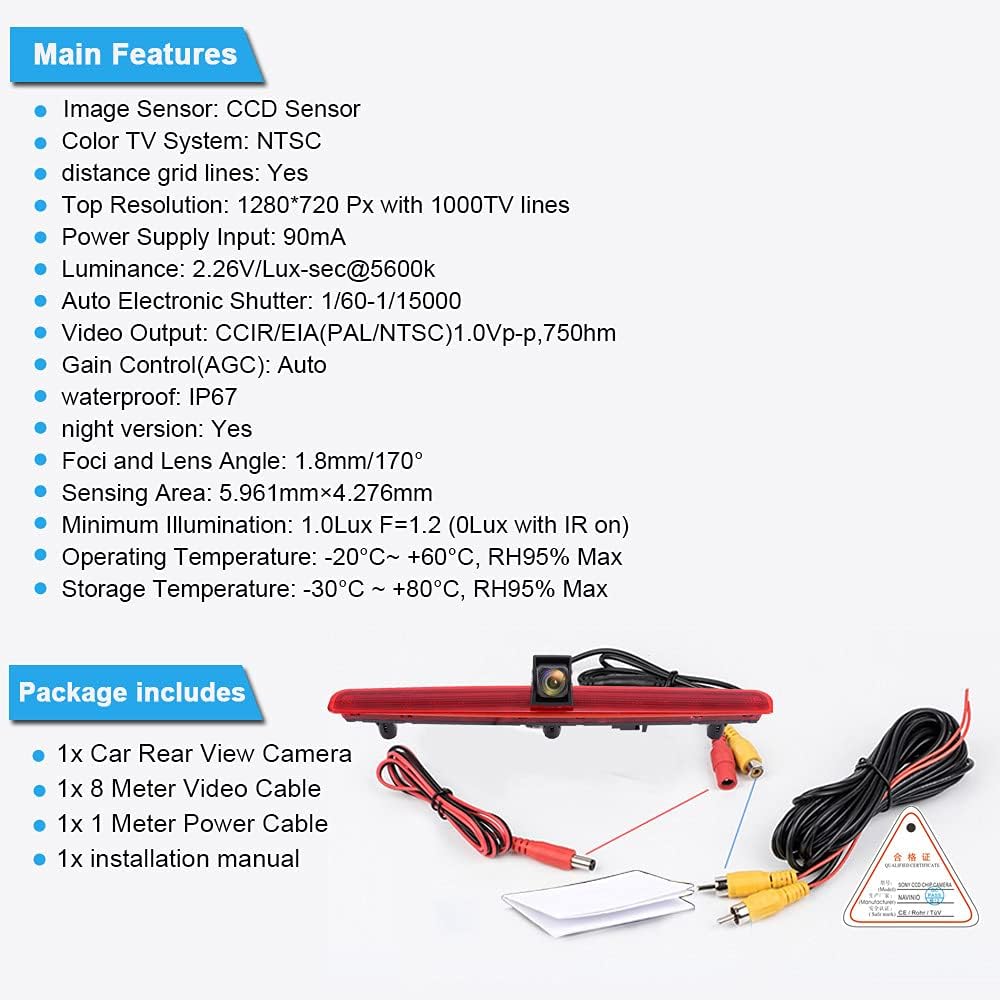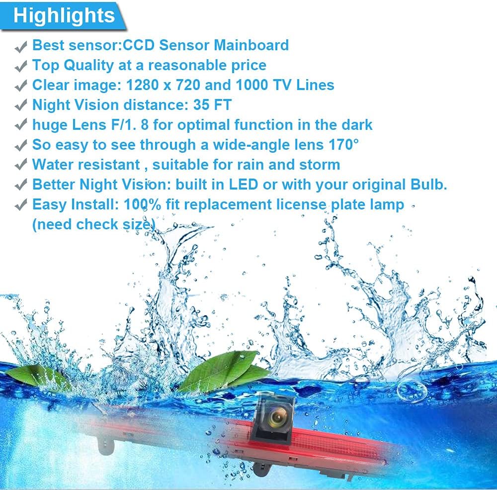 - 🔆 1280 * 720 Pixel 1000TV Zeilen. Bremsleuchte Kamera Bremslicht Rückfahrkamera. Ersatz für VW T5 Bus Transporter Multivan Caravelle Business mit Heckklappe dritte 3. Bremslei (Nicht Flugelturer) 2003- 2015 Bj