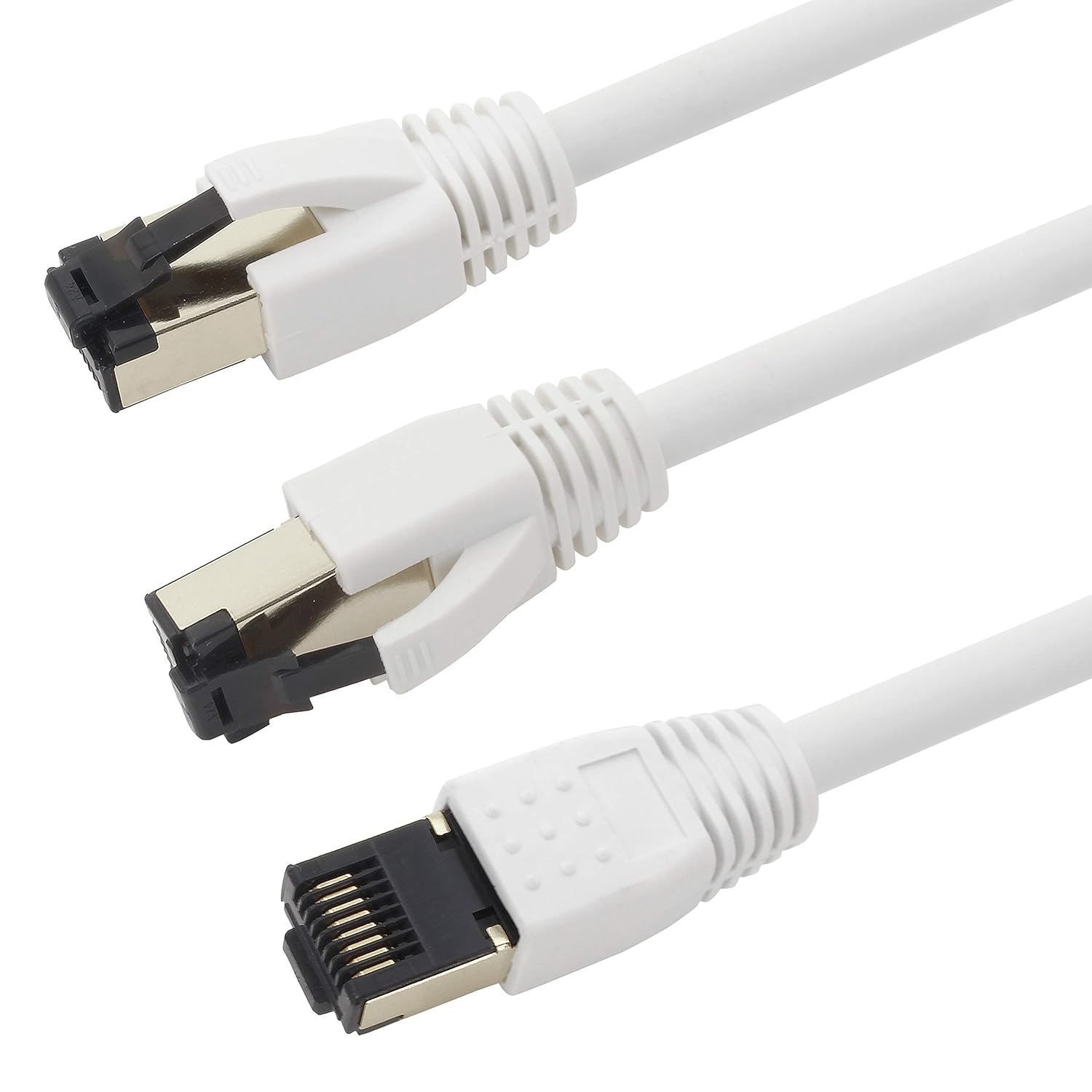 - ✅ CAT 8 NETZWERKKABEL: Für alle Internet, Glasfaser Geschwindigkeiten geeignet. Fertig konfiguriertes Kabel mit 2 x RJ 45 Stecker.