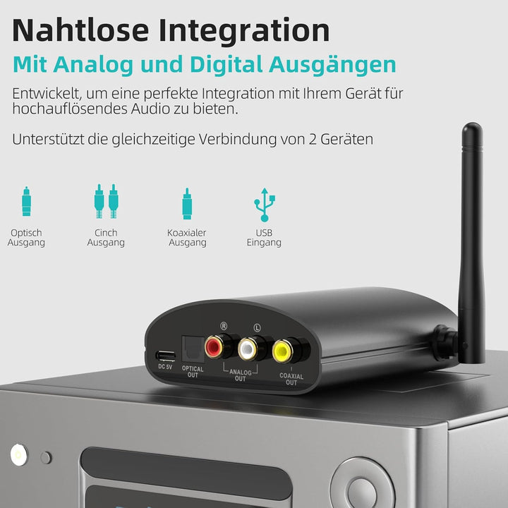 - VIELSEITIGE UND STABILE KONNEKTIVITÄT: Mit analogen RCA, digitalen optischen und digitalen Koaxialausgängen ist der DS500 perfekt kompatibel mit allen Arten von Audiosystemen für echte hochauflösende Audios. Mit einer externen Booster-Antenne zur