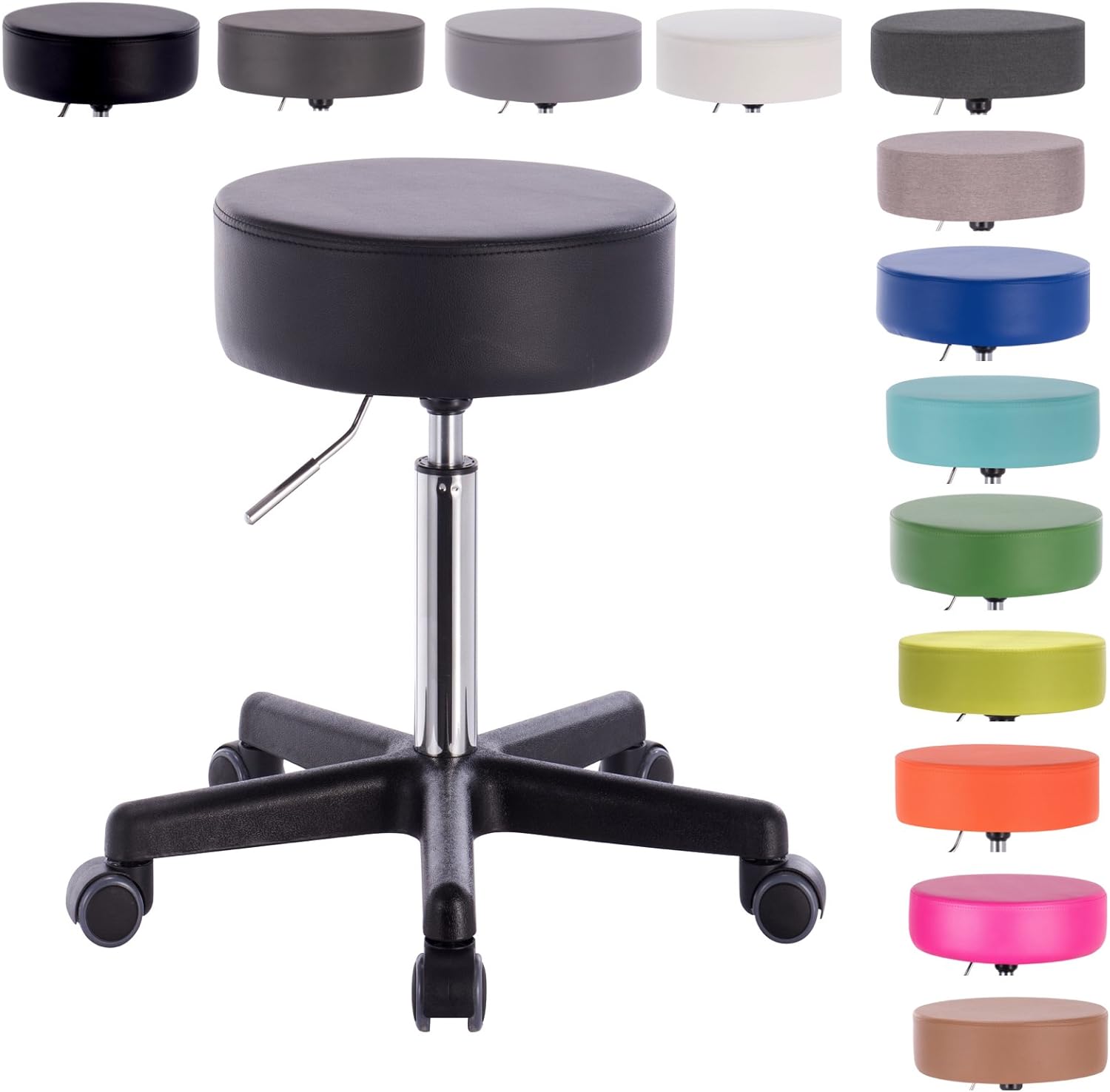 • ☑️ 𝐇𝐎𝐄𝐇𝐄𝐍𝐕𝐄𝐑𝐒𝐓𝐄𝐋𝐋𝐁𝐀𝐑: Dieser bequeme Büro-Hocker ist vielseitig nutzbar. Der Sitz ist um 360° frei drehbar und die Sitzhöhe lässt sich mit dem verchromten Hebel nach Belieben stufenlos auf eine Sitzhöhe von ca. 51 bis ca. 71 cm einstellen