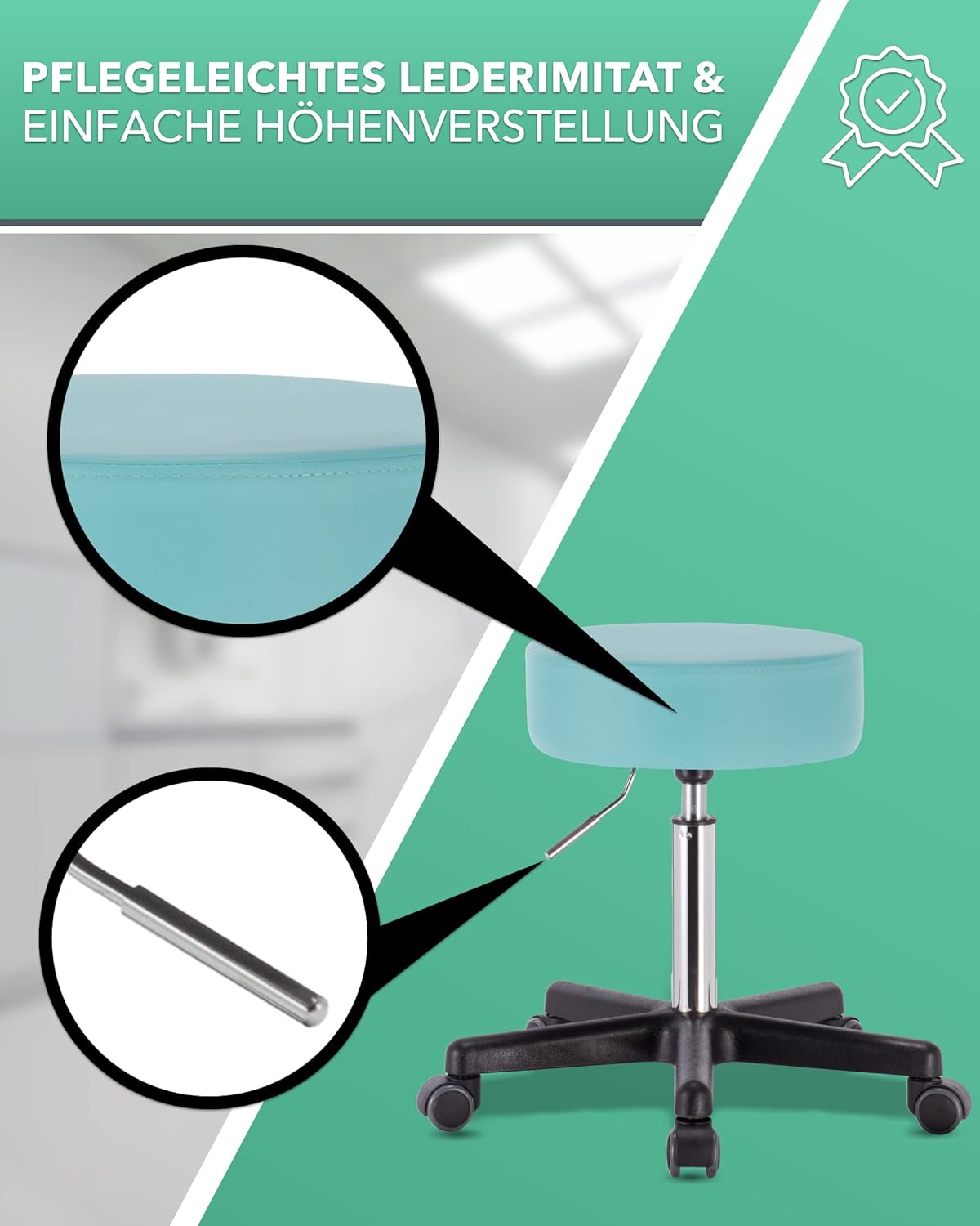 • ☑️ 𝐋𝐀𝐍𝐆𝐋𝐄𝐁𝐈𝐆𝐄 𝐏𝐎𝐋𝐒𝐓𝐄𝐑𝐔𝐍𝐆: Der praktische Hocker auf Rollen hat eine ausreichend straffe Posterung für ein sicheres Sitzempfinden - ein vielseitig verwendbarer Drehstuhl für zu Hause oder den Beruf