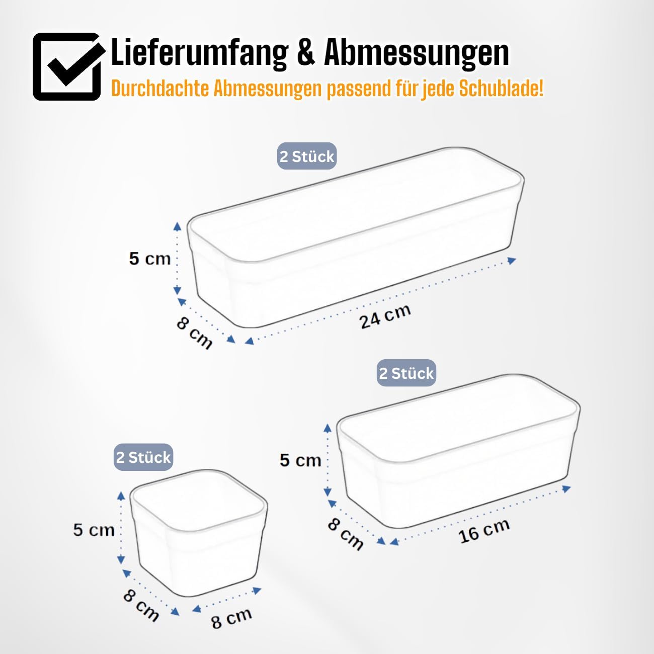 - Schubladen Organizer Set (6 Boxen, 3 verschiedene Grössen) in der Farbe anthrazit. Durch die individuelle Anordnung passend für alle gängigen Schubladen, Kommoden, Schränke usw.