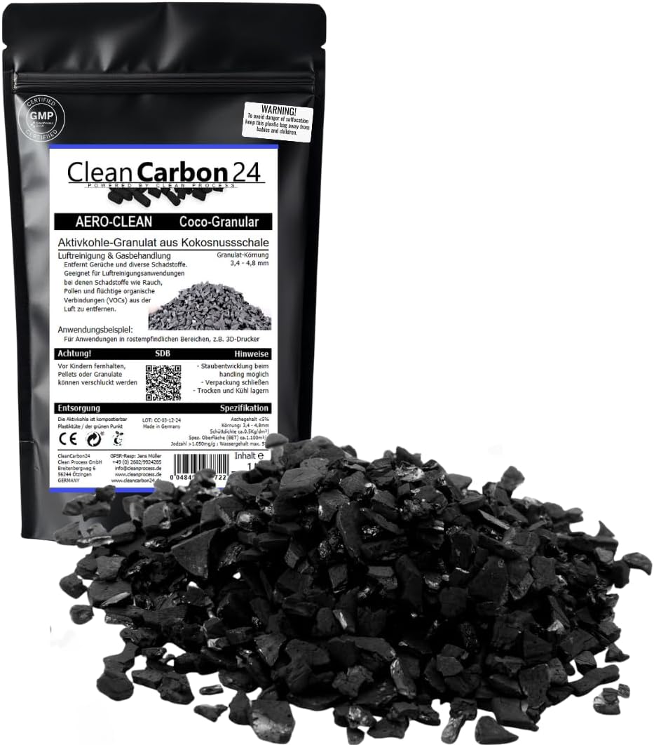 - 🌟 Zur Geruchs- und Schadstoffentfernung von Abgasen aus Abluft und Umluft. Bevorzugt auch als Umluftreiniger in 3D-Druckergehäusen eingesetzt. Beim PH-Wert von 9-11 kein Rost mehr auf blanken Metalloberfläche