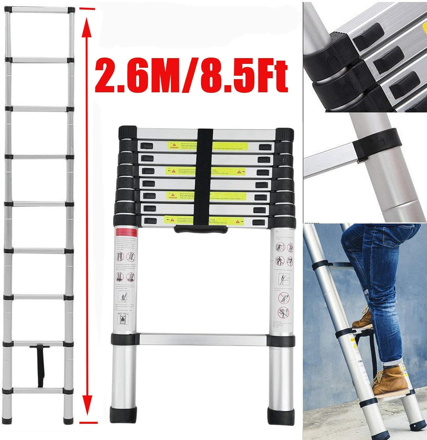 - * Tragbar und einfach zu verstauen: Die maximale Höhe der Teleskopleiter-Verlängerung beträgt 8,5 ft / 2,6 m und kann auf 72 cm x 47 cm x 9 cm heruntergeklappt werden;