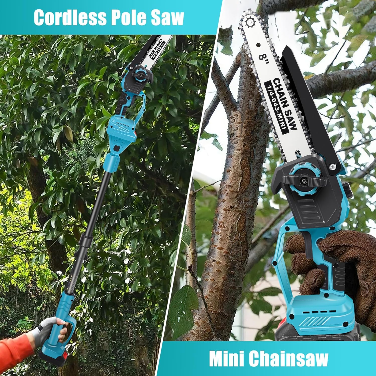 - 2-in-1 Akku-Hochentaster & Kettensäge – Bürstenlose Teleskop-Kettensäge kombiniert eine bürstenlose 8-Zoll-Kettensäge mit einer 9-Fuss-Teleskopstange, sodass Sie damit bequem hohe Äste und Bäume für verschiedene Schneidaufgaben beschneiden