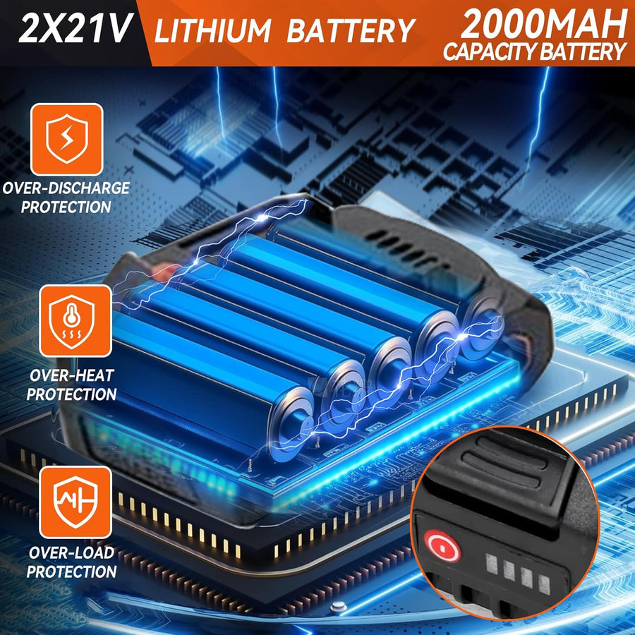 - Wiederaufladbare Batterie: Die Langstreckenkettensäge ist mit 2*2000mAh wiederaufladbaren Batterien ausgestattet, die nur 2-3 Stunden dauern, um vollständig aufzuladen und bis zu 40 Minuten verwendet werden können. Mit seiner grossen