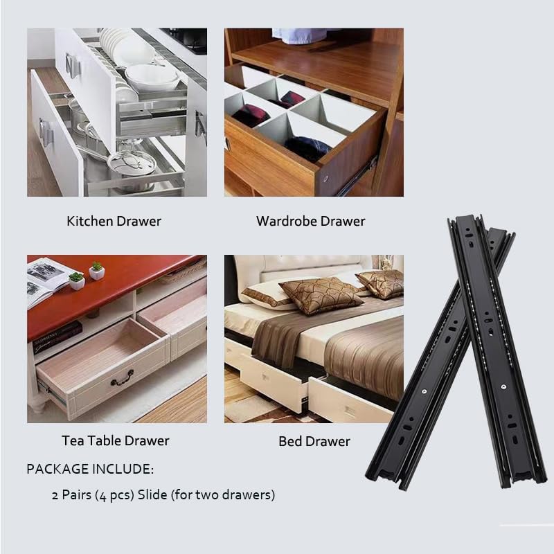 - Unsere Schubladengleiter haben eine doppelte Anti-Drop-Funktion. Es würde verhindern, dass die Schublade von Schränken getrennt wird.