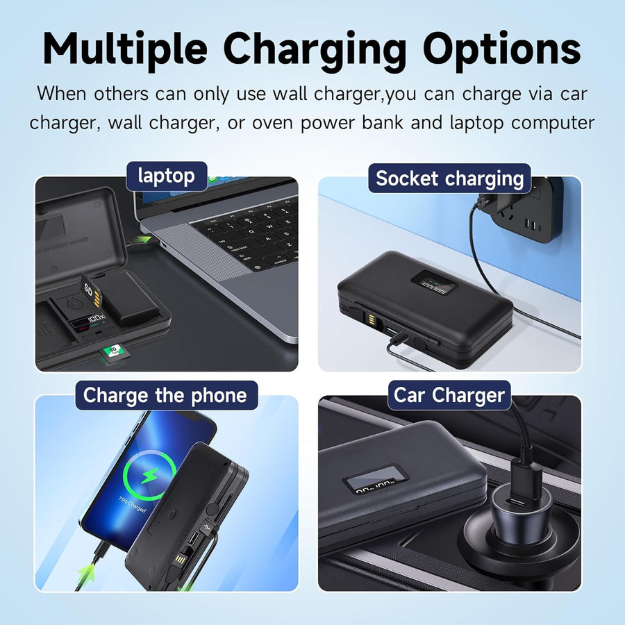 - 【Schnelles Laden】Batterieausgang:8.7V 1A*1; 0.5A*2 Eingang, USB AUSGANG:5V/2A, Eingang:5V/2A,Es dauert etwa 1.25 Stunden, um eine Batterie aufzuladen, und etwa 2.5 Stunden, um zwei Batterien gleichzeitig aufzuladen;LCD-Bildschirm,Sie können