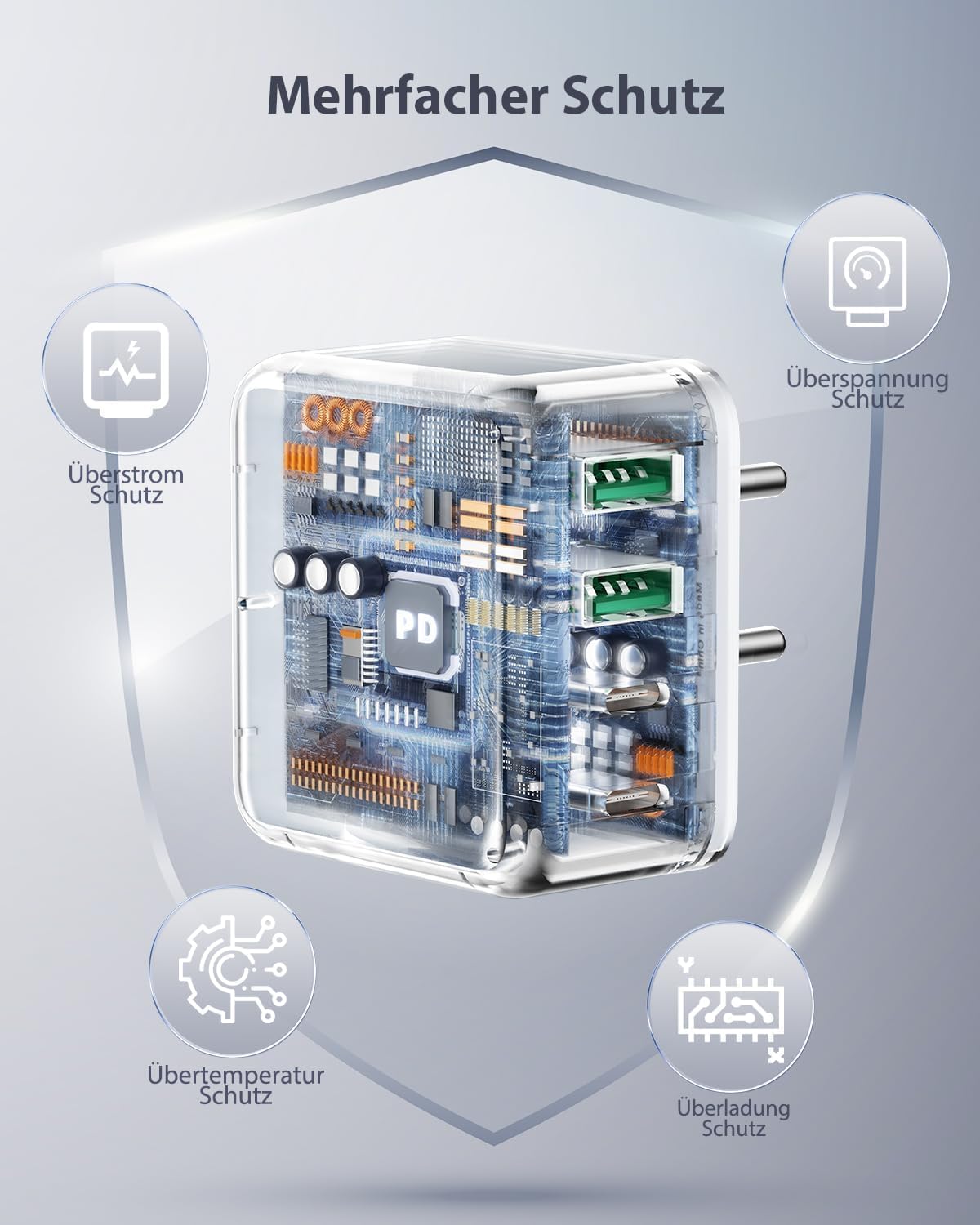 • 【Sichere und Zuverlässige Ladegerät USB C】 Das USB Ladegerät Mehrfach verfügt über mehrere integrierte Schutzmassnahmen, um ein schnelles und sicheres Laden zu gewährleisten. Der aktualisierte Smart Chip schützt Ihr Gerät vor Überstrom-,