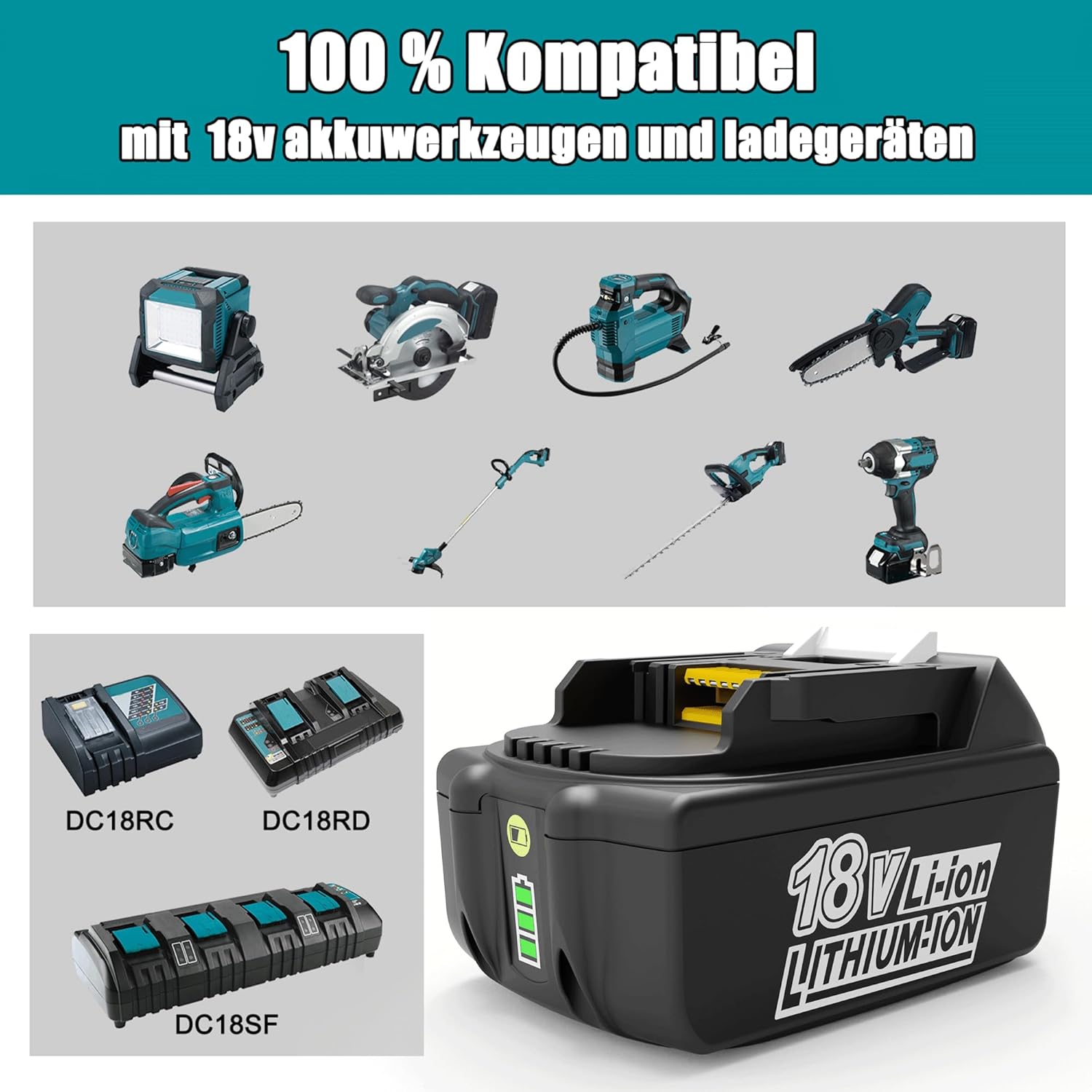 • 【Akku Kompatibilitä】Perfekt für Makita 18v Akku BL1860 BL1850 BL1840 BL1830 BL1820 BL1850B und Ladegerät DC18RD DC18RA DC18RC DC18SF,Verbesserte 5500mAh Kapazität, vergleichbar mit dem Original.