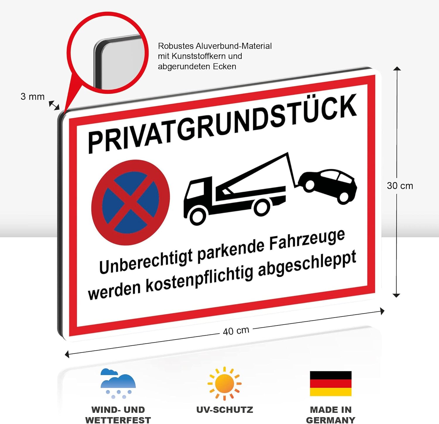 - 2x Privatgrundstück Schild 40 x 30 cm aus Alu 3mm Alu-Dibond stabile Aluminiumverbundplatte