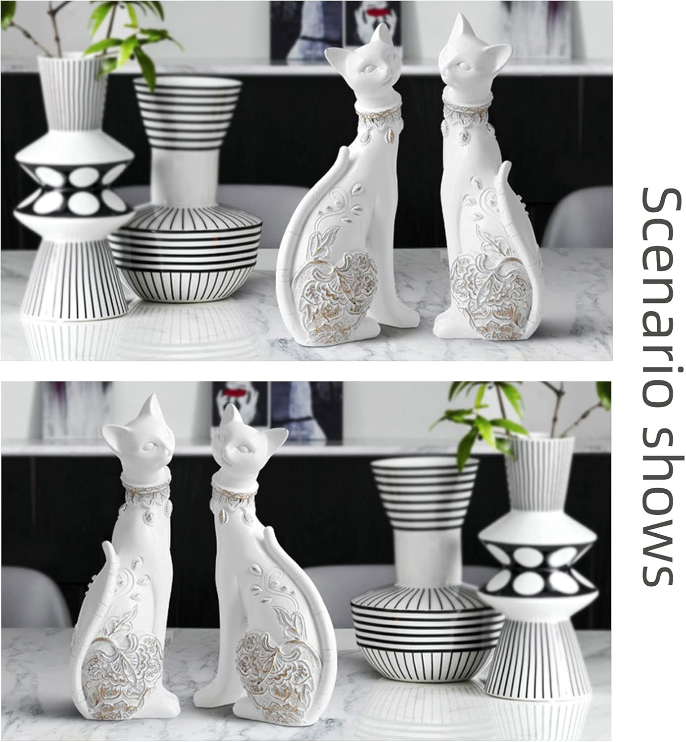• Paar-Statuen für Heimdekoration, einzigartiges Design, schöne Farbe und gute Grösse, Sie können es im Schlafzimmer, Wohnzimmer, Bar, Küche stellen und es ist auch eine der besten Wahl für Geschenke. Schöne und elegante Kätzchen bringen viele