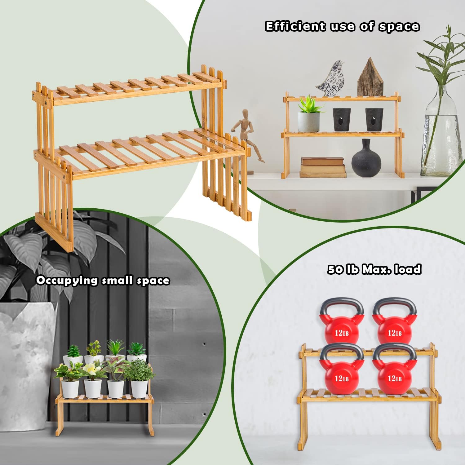 - Effiziente Raumnutzung: Der kleine Pflanzenständer nimmt nur 0,08 m² auf, Sie können ihn auf Ihrem Schreibtisch, Tisch, Badezimmer, Sofa-Seite, Treppenecke oder Fenster stellen. Die zwei Ebenen können mehrere Pflanzen, Luftpflanzen, Sukkulenten,