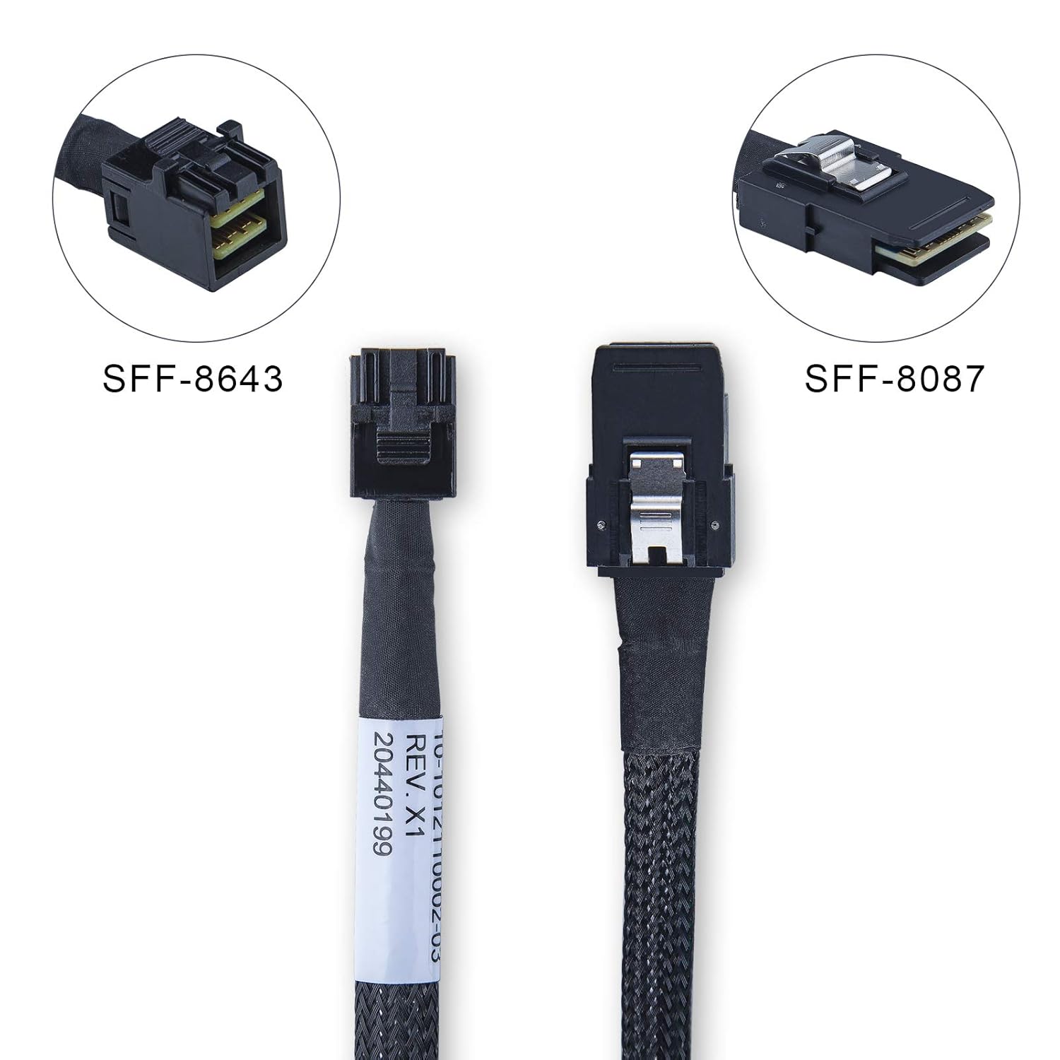 - Internal SAS HD SFF-8643 to Internal SAS SFF-8087 Cable, 0.8-Meter(2.64-ft)