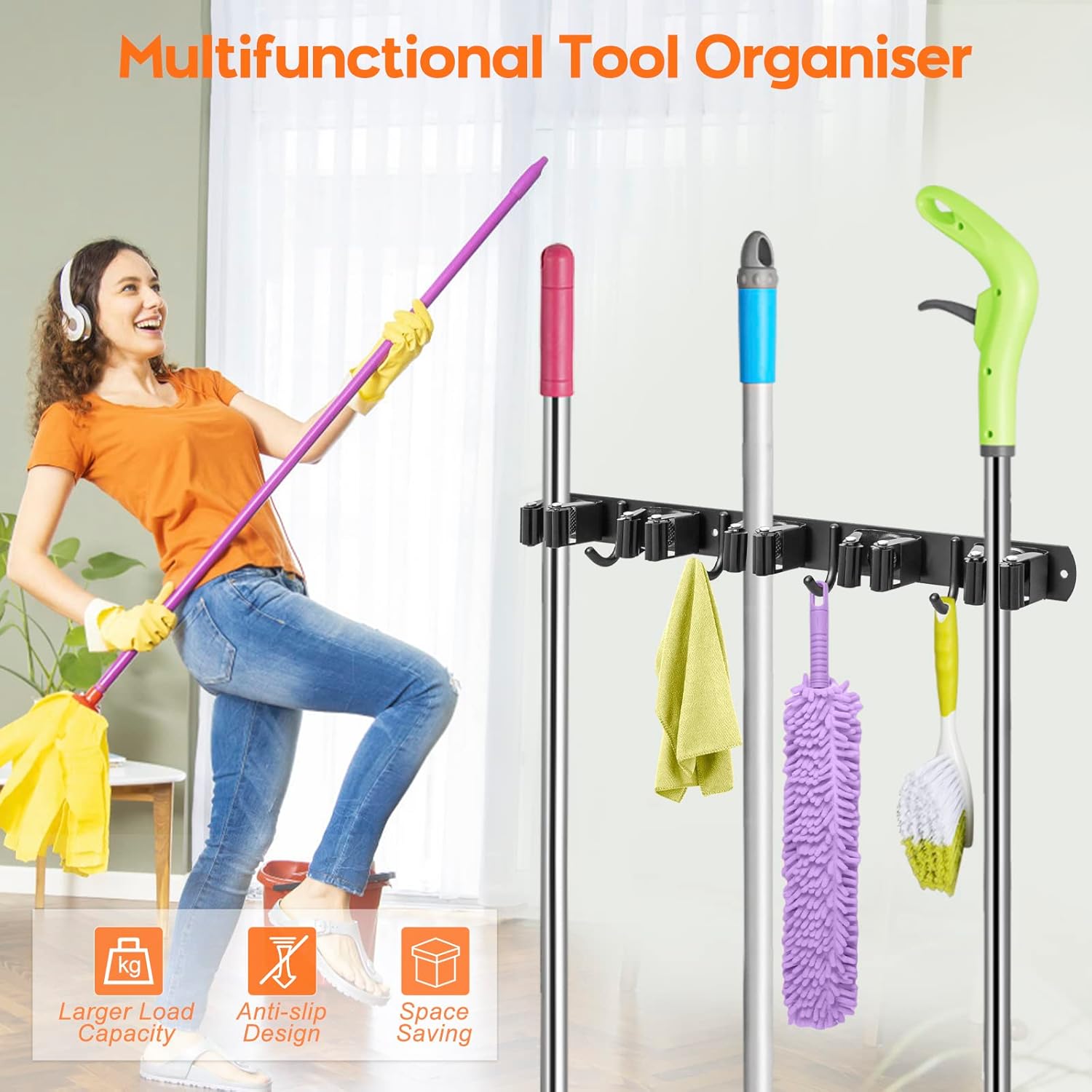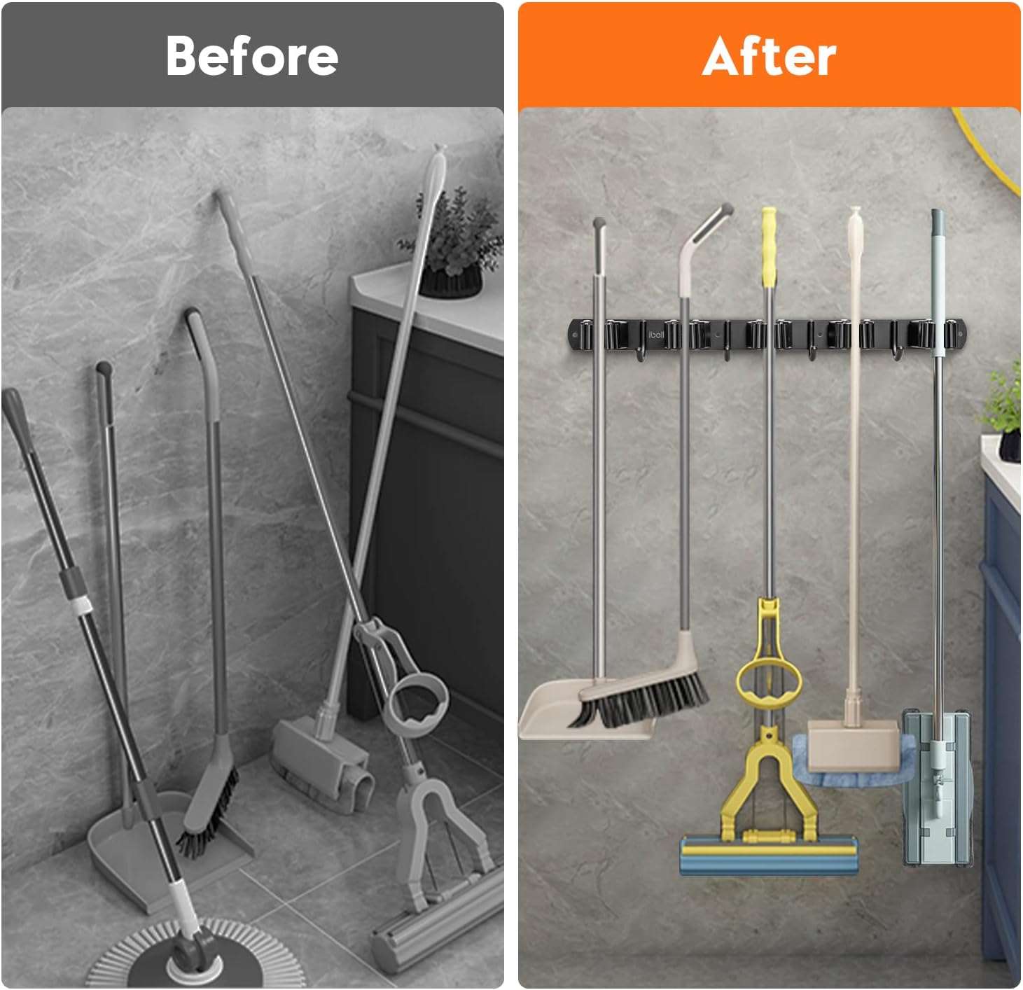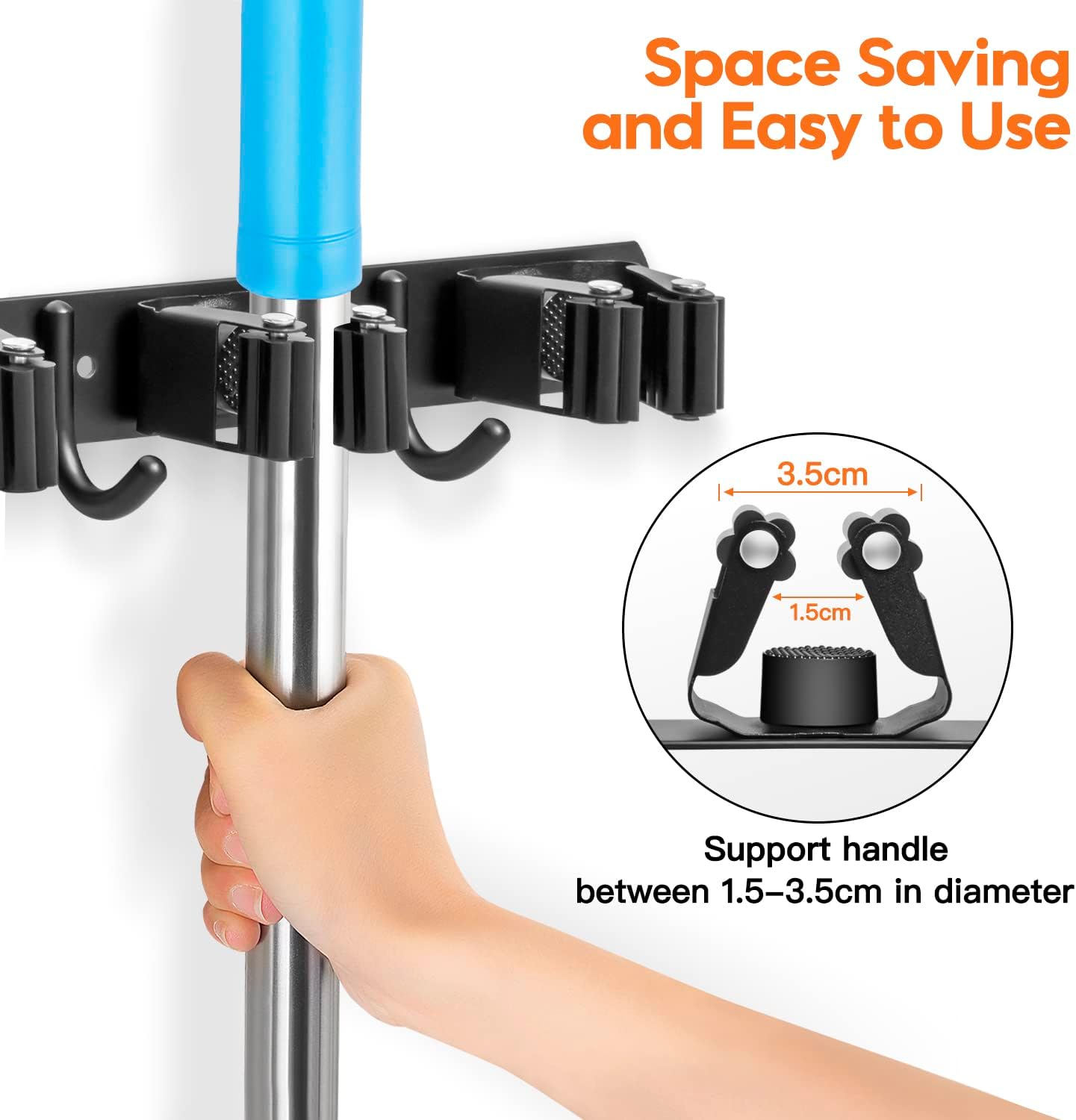 - 【Für drinnen und draussen】: Die Länge des Besenhalters ist 43cm, die es leicht in verschiedenen Orten verfügbar machen. Der Werkzeugaufhänger kann nicht nur Mopps und Besen organisieren, sondern auch Staubtöpfe, Bürsten, kleine Staubsauger und