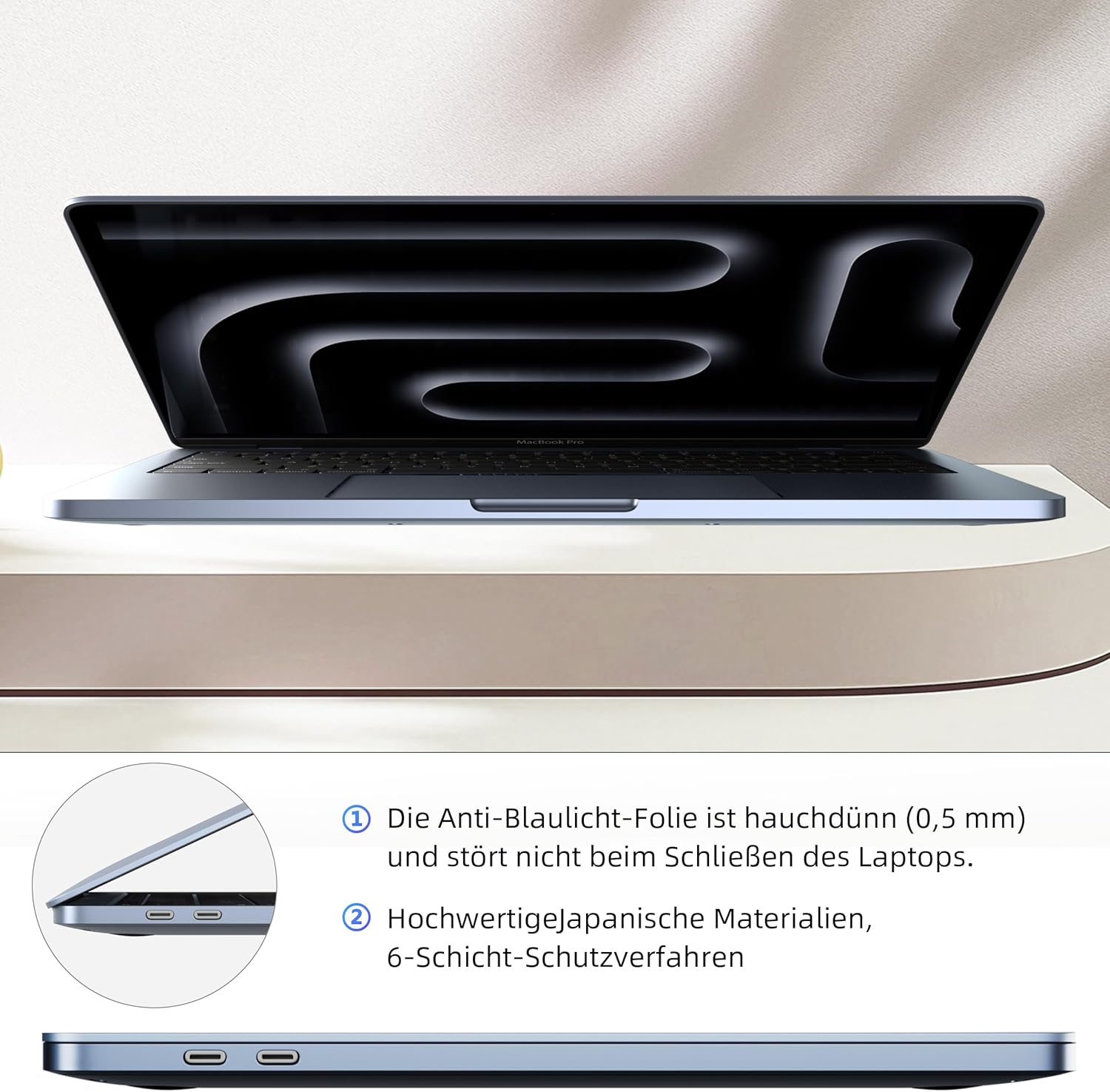- Hervorragender Blaulichtschutz: Im Gegensatz zu herkömmlichen Displays mit Blaulichtfilter nutzt dieser Mac bildschirm schutzfolie die neueste Blaulichtfiltertechnologie und blockiert bis zu 99,3 % des schädlichen Blaulichts. Wenn Sie sich Sorgen