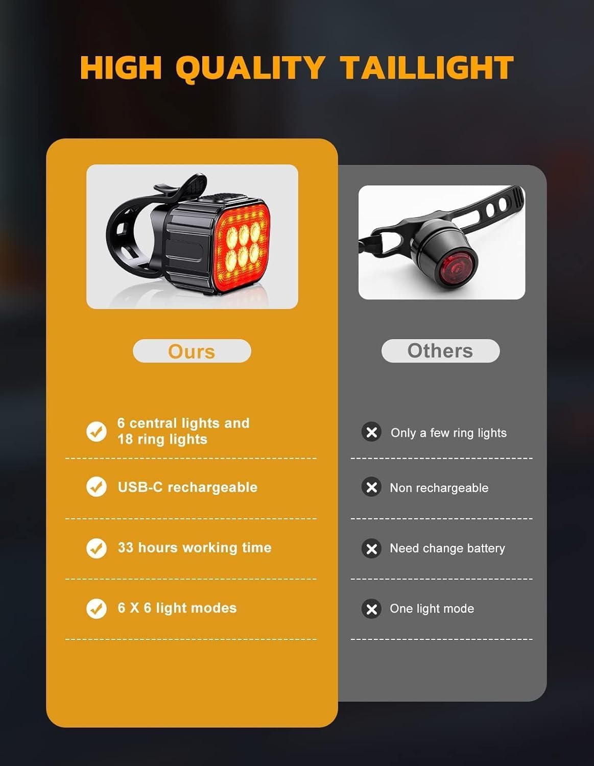 - IP65 Wasserdicht und Langlebig - Das vollständig verbesserte wasserdichte IP65-Fahrradlicht ermöglicht es Ihnen, bei schlechtem Wetter zu fahren. Geniessen Sie Ihre Fahrt auch bei Nebel oder Regen! Er besteht aus einem hochwertigen Gehäuse und ist