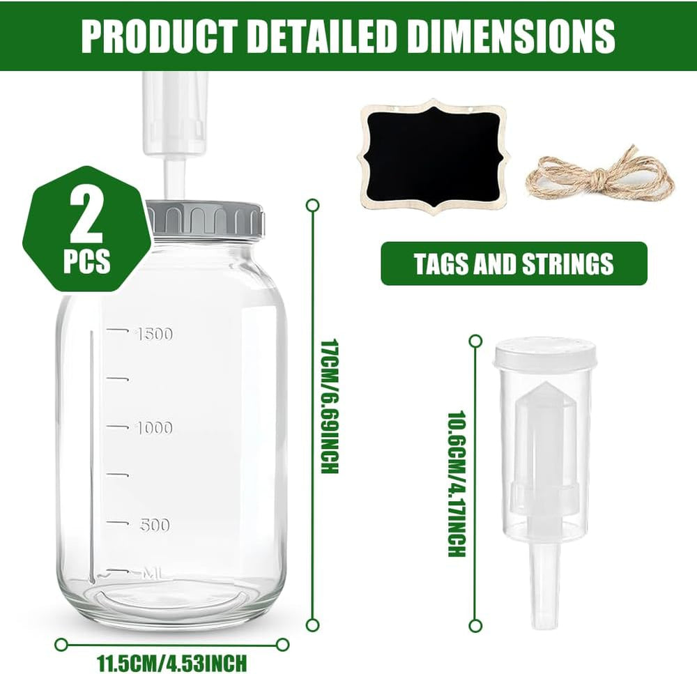 - 【Praktisches Set】Dieses Set besteht aus zwei Breiter Mund Fermentiergläser (je 64 Unzen), die sich ideal für grosse Mengen oder verschiedene Gärprojekte eignen. Die Gefässe selbst können mit kochendem Wasser oder hohen Temperaturen sterilisiert