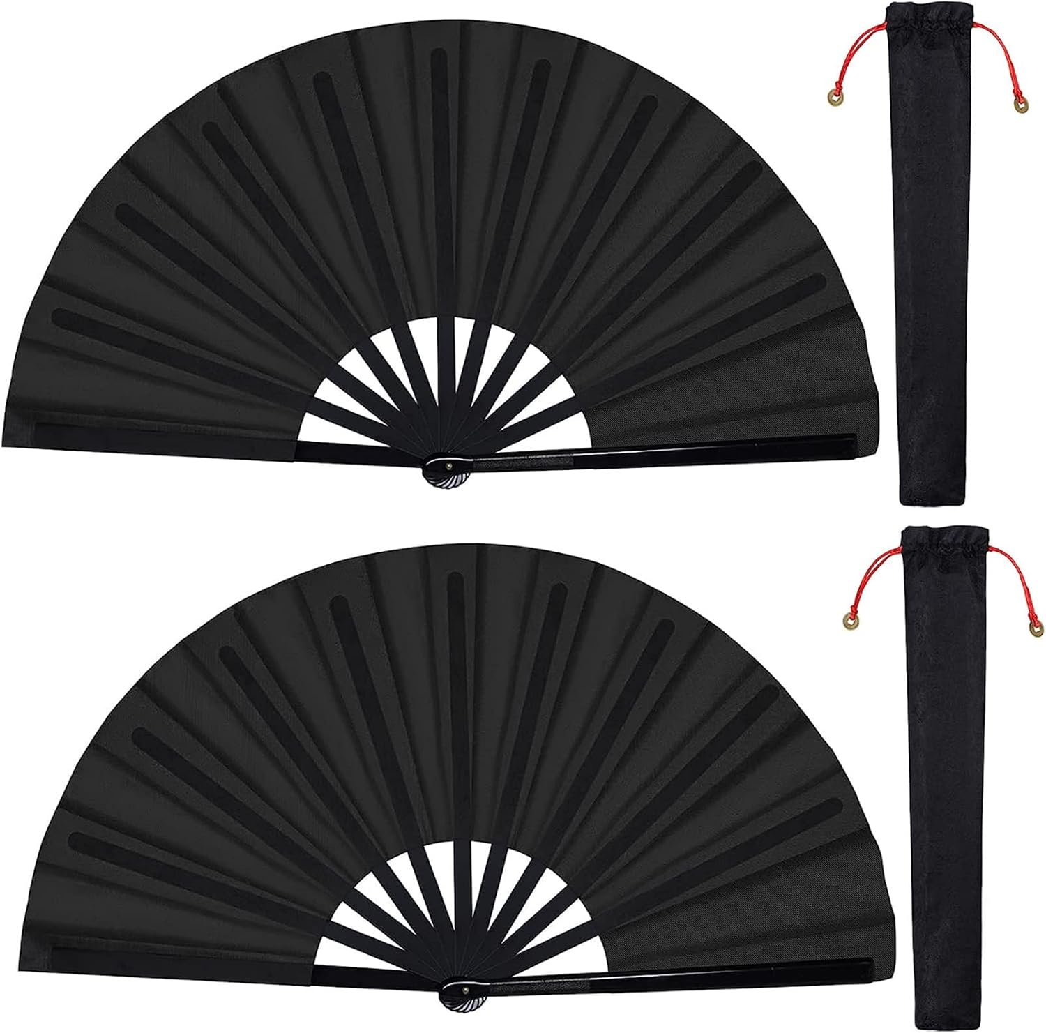 2 Stück Grosse Faltbare Seide Hand Fächer Chinesischer Tai Chi Faltender Handfächer Nylon Tuch Chine