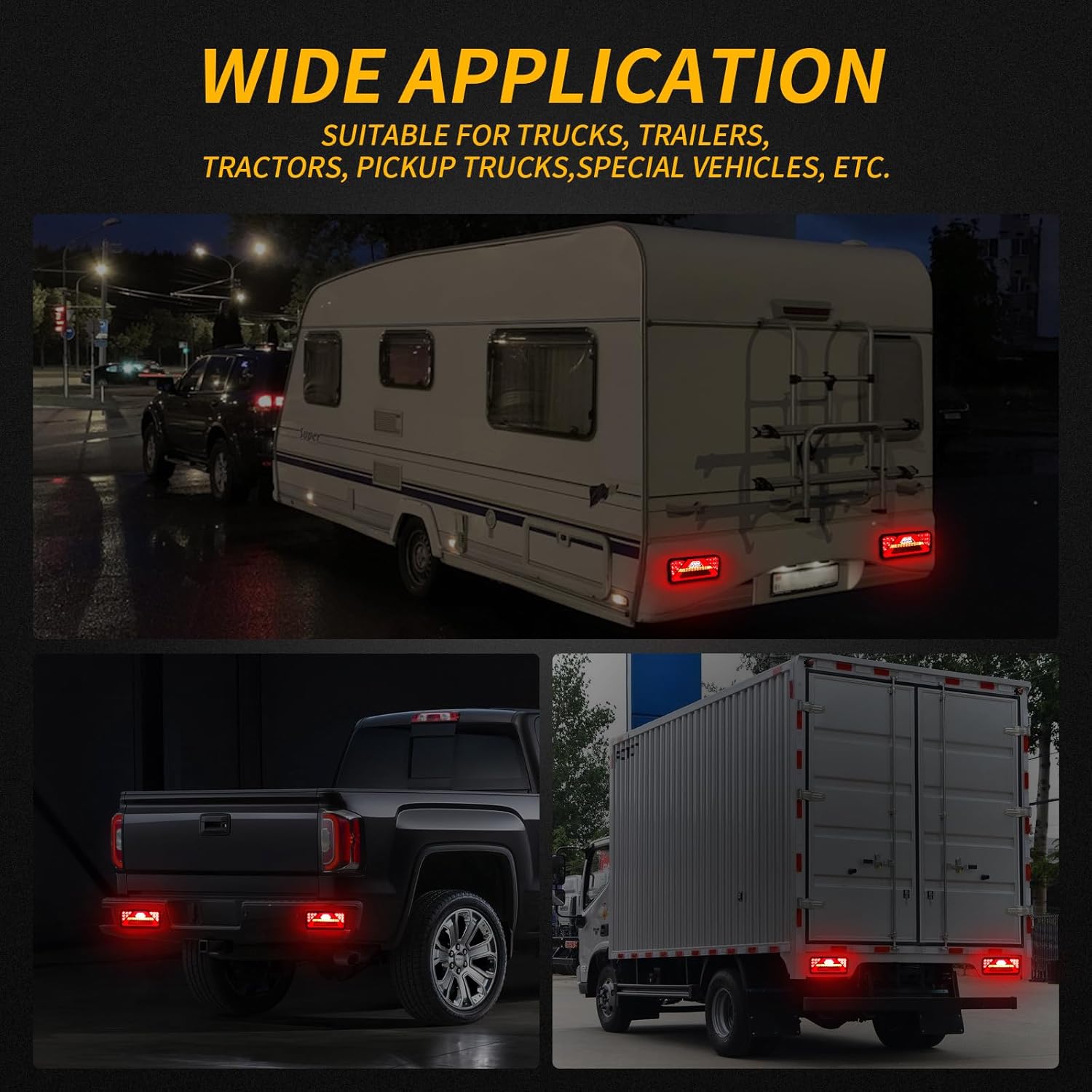 - 【Vielseitige Kompatibilität】Reagiert während der Fahrt sofort und ohne Verzögerung, geeignet für die Aufrüstung der Rückleuchten einer Vielzahl von Fahrzeugen, darunter Lkw, Anhänger und Wohnmobile.