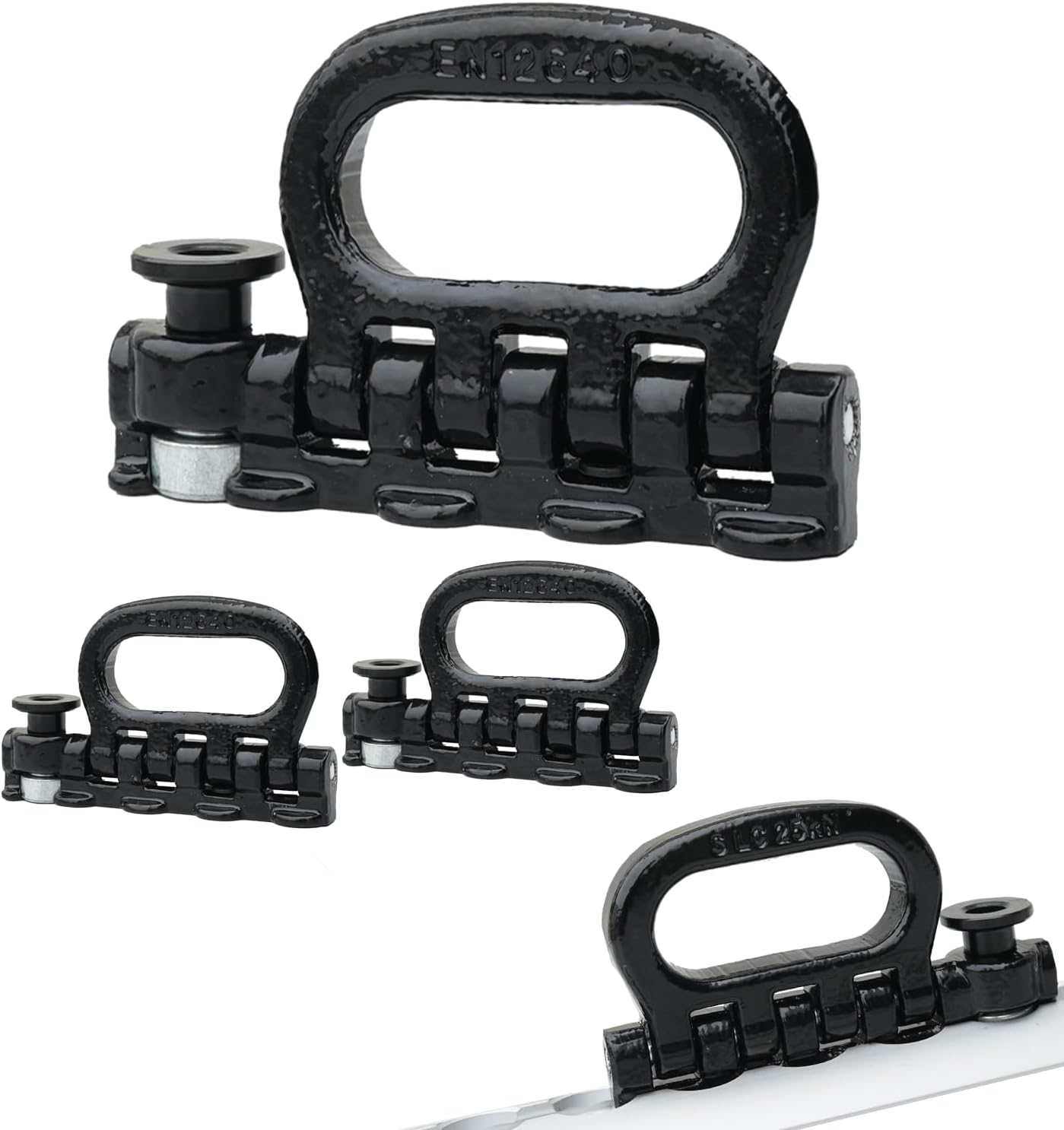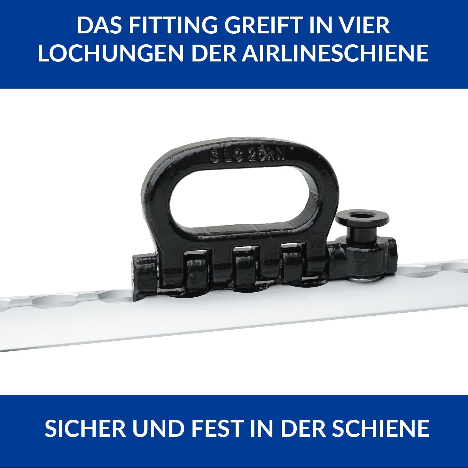 - Vierfach-Design: Ermöglicht die gleichzeitige Nutzung von vier Befestigungspunkten an einer Airlineschiene oder Zurrschiene.