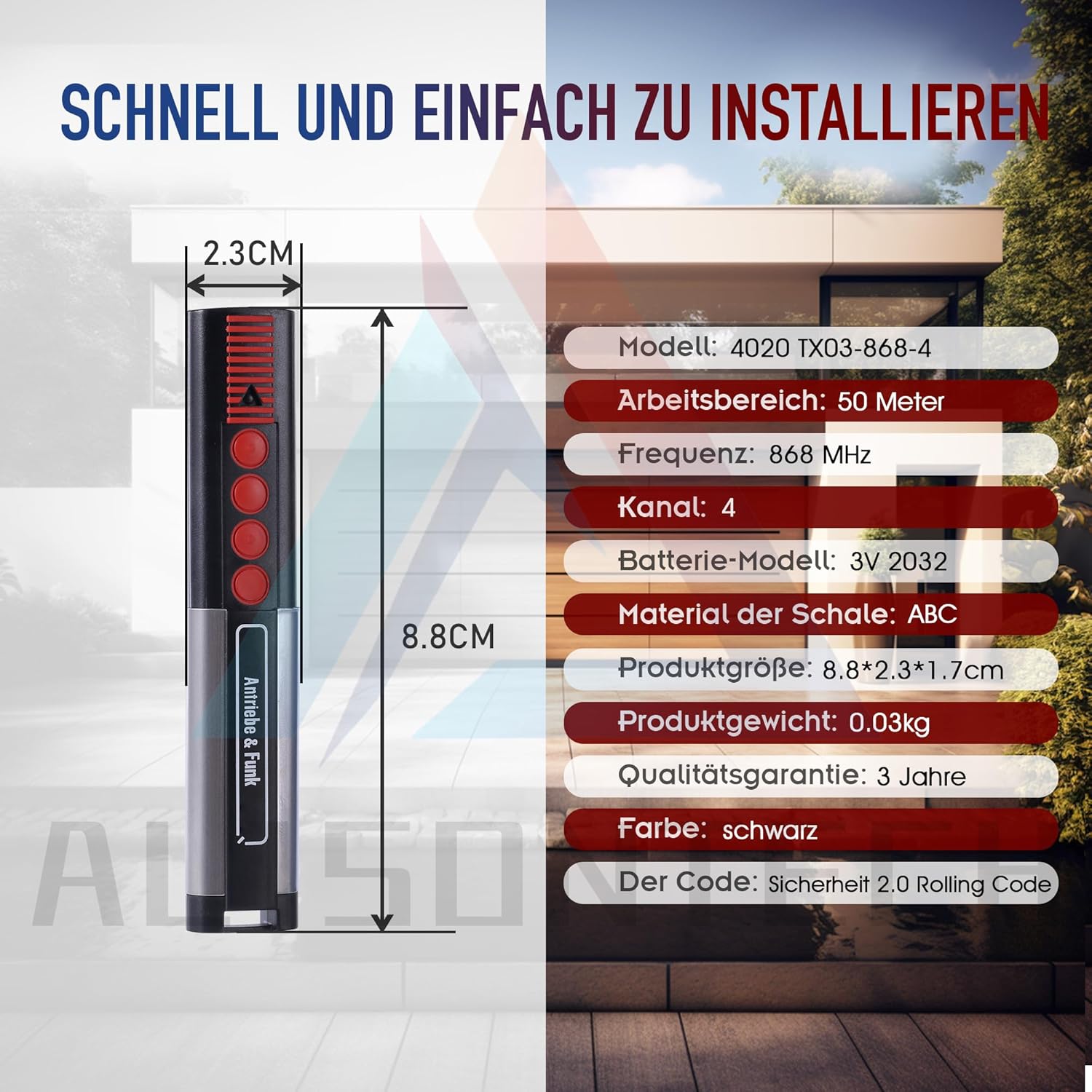 • 2 x 4020 TX03-868-4, 4868 MHz Handsender Handbuch, Top Qualität Original. 100% kompatibel mit 4026, Sommer 4031, 4025.