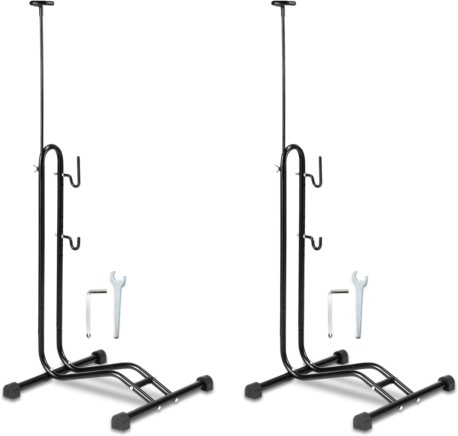 - 🔥♀️: 7-fach Höhenverstellbaren Haltebügel: Höhenverstellbaren Haltebügel bis 43cm. Jeder Fahrradhalter besitzt ein Mass von ca. 46 x 38 x von 76 bis 124 cm (LxBxH).