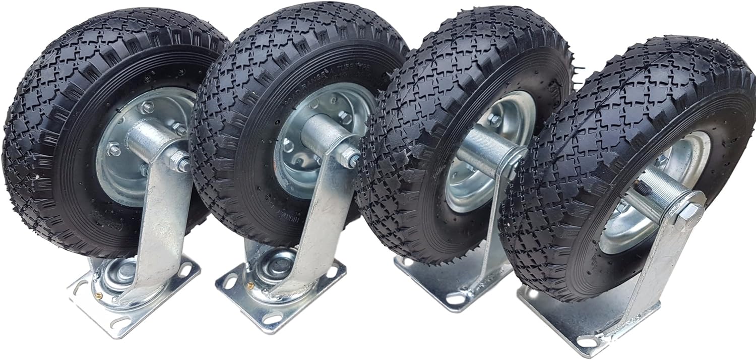 - 2 x Lenkrolle + 2 x Bockrolle im Set mit Luft-Rad | Stahlfelge silber