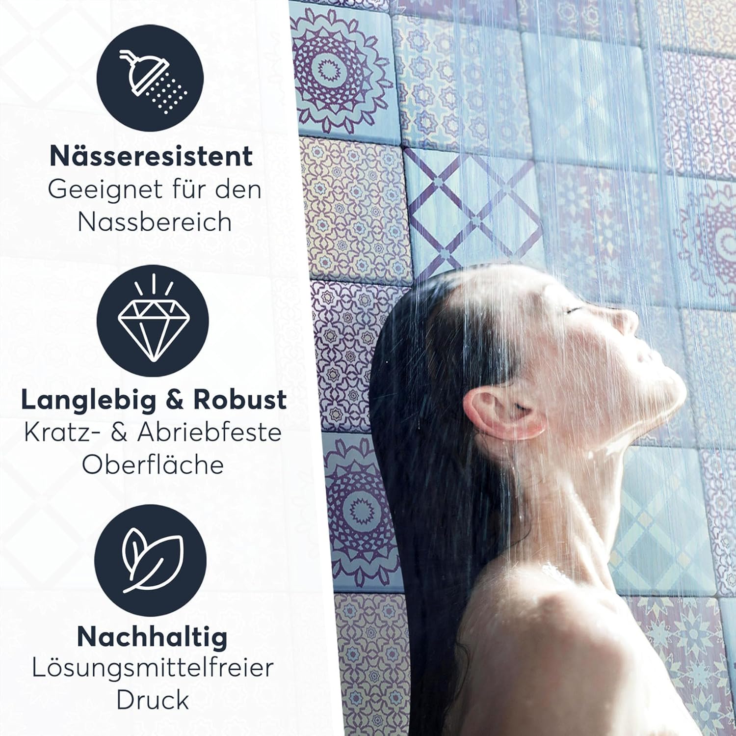 - HOCHWERTIGE VERARBEITUNG - Passgenauer Zuschnitt, hochwertige Druckverfahren und beste Materialien zeichnen unsere Fliesensticker aus. 100% Zufriedenheitsgarantie mit unseren Klebefliesen!