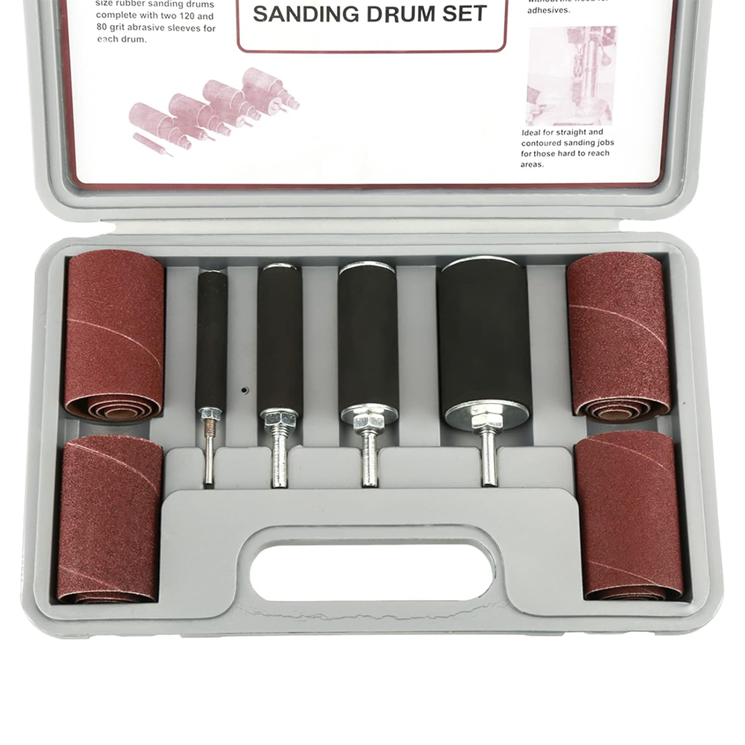 • 4 OPTIONALE GUMMI-TROMMELN - 1/2 ", 3/4", 1 "und 1,5" Gummi-Trommeln sind üblich und kompatibel mit rotierenden Werkzeugen wie Bohrmaschinen und Handbohrmaschinen. Nur Gummitrommeln, Schleifhülsen und Koffer, sonst nichts.