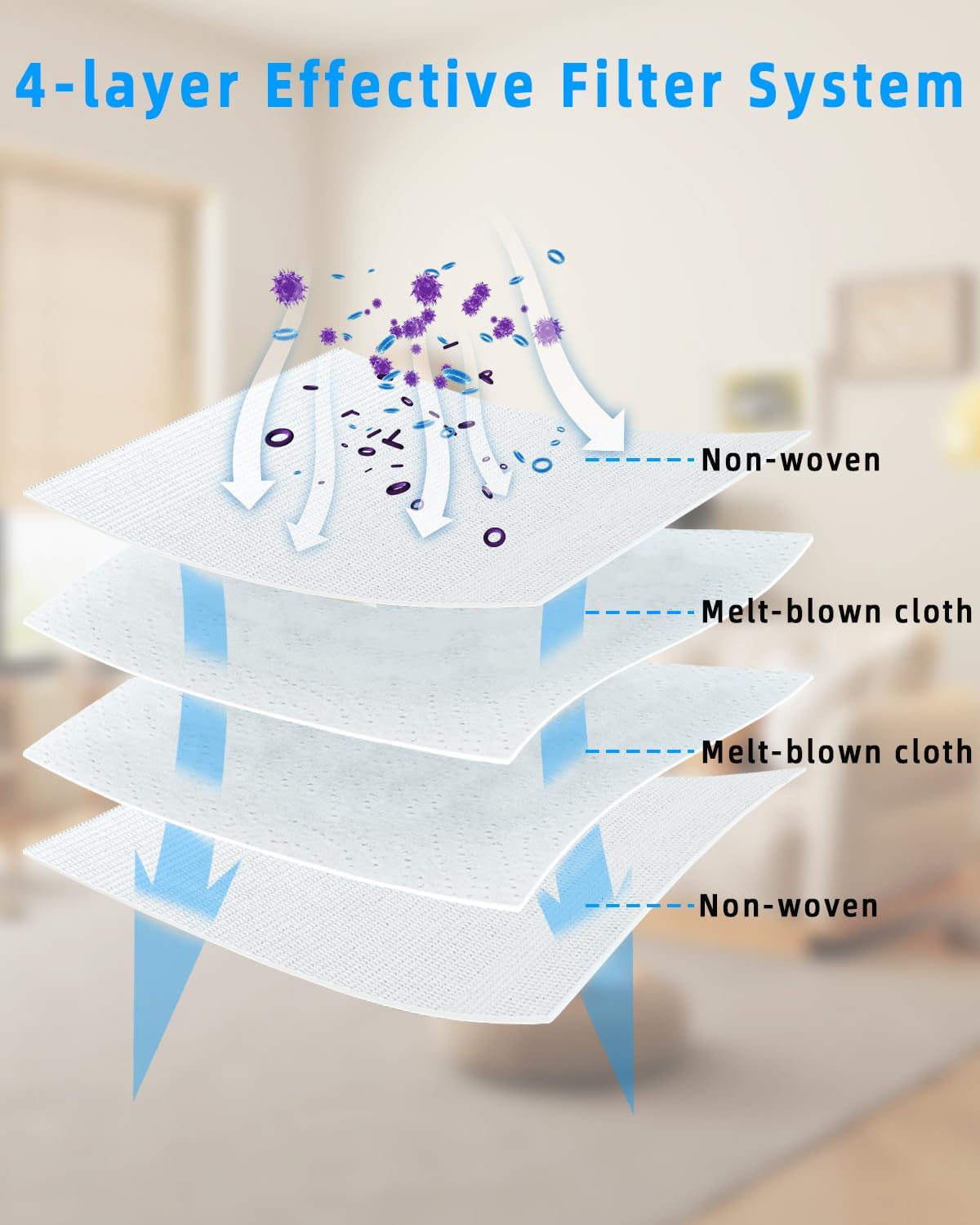 - Hochwertige Materialien: Das Produkt besteht aus hochwertiger ultrafeiner Schmelzegeblasener Faserfilterschicht und Vliesstoff, mit starker Abdichtungsfähigkeit, die die meisten Staub- und Luftpartikel effektiv filtern kann