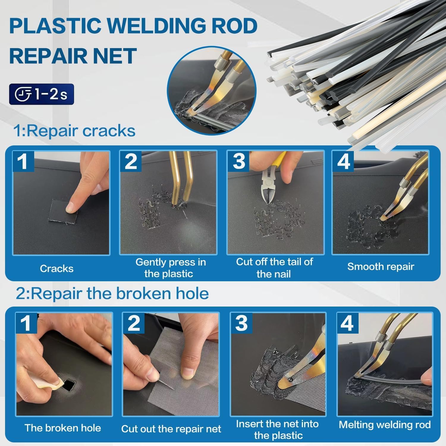 - 【2-in-1 Schweisswerkzeug】:Schweissen undTroffeln 2 in one, Der ideale Weg zur Reparatur der meisten modernen Produkte aus Kunststoff. Geeignet zum Reparieren und Verstärken von Kunststoffteilen aller Automobile, wie Stossstangen, Armaturenbretter,