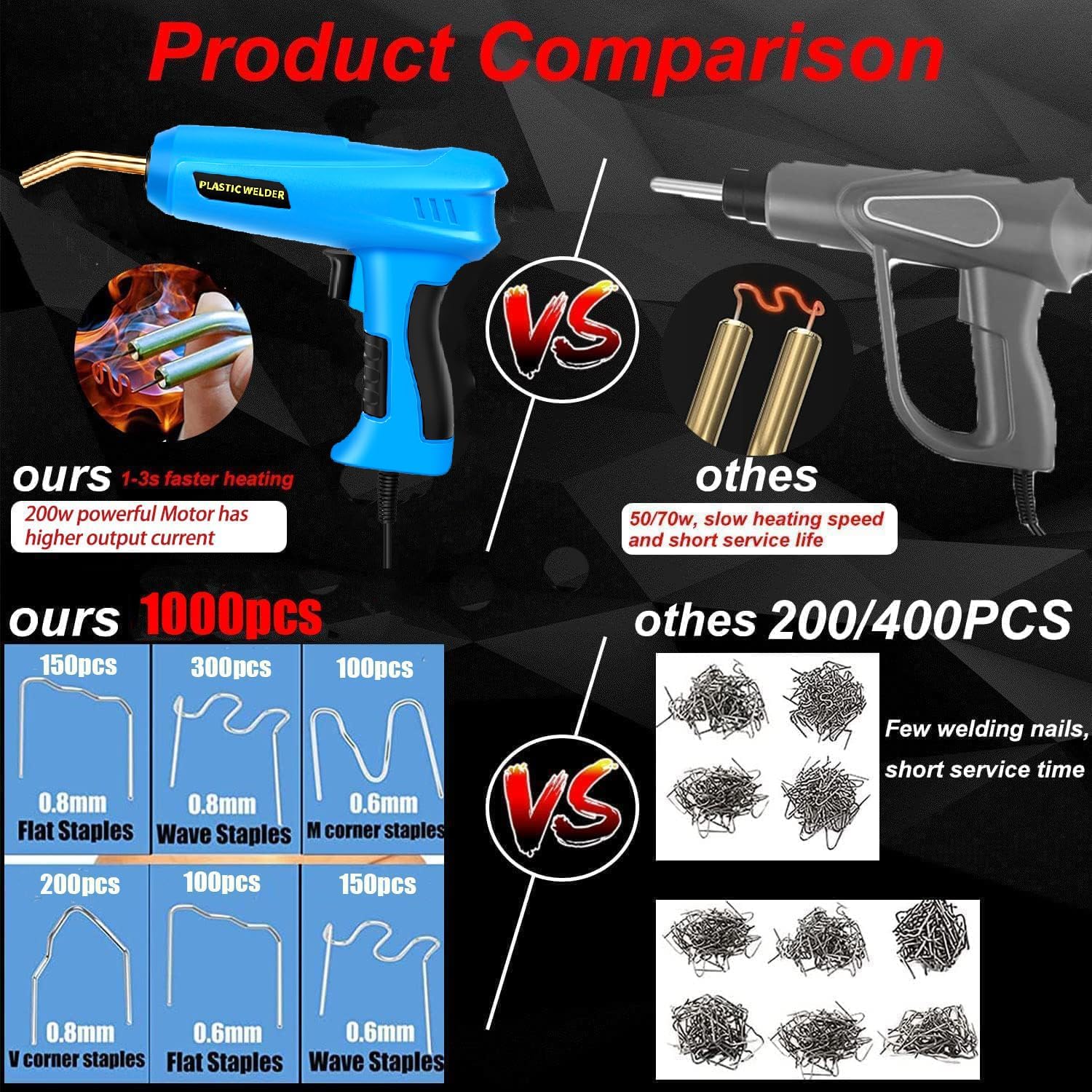 - 【Neu verbessertes Zubehör】: Das Kunststoffschweissmaschinen-Kit enthält 1000 Stück Schweissnagel, 6 Typen, um Ihre unterschiedlichen Schweissanforderungen zu erfüllen.Ausgestattet mit einem Schaber, einer Zange und einem Universalmesser können