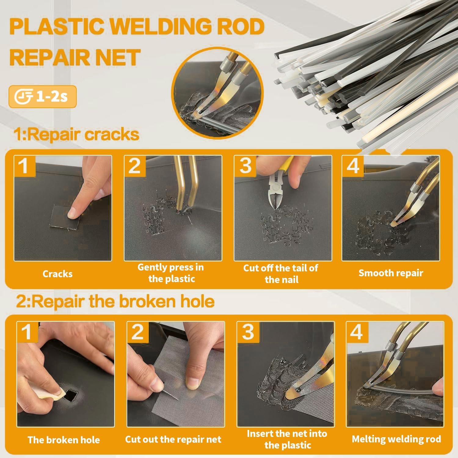 • 【2-in-1 Schweisswerkzeug】:Schweissen undTroffeln 2 in one, Der ideale Weg zur Reparatur der meisten modernen Produkte aus Kunststoff. Geeignet zum Reparieren und Verstärken von Kunststoffteilen aller Automobile, wie Stossstangen, Armaturenbretter,