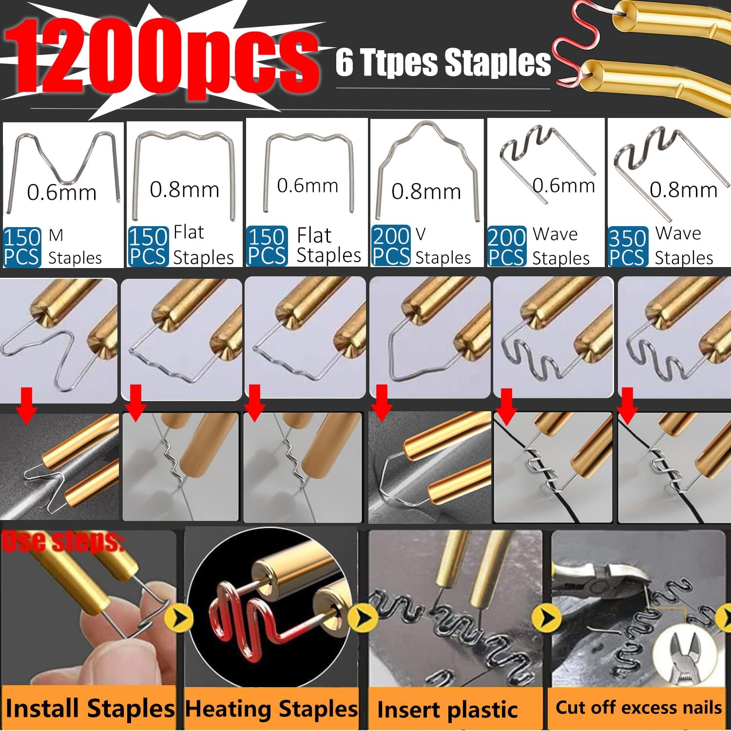 - 1200PCS Schweissnagel:Sind Sie immer noch besorgt, dass es zu wenige Schweissnägel zu verwenden gibt? Unser Kunststoffschweissenssatz ist mit 1200pcs der Schweissnägel ausgestattet (150pcs 0.6mm äussere Eckklammern, 350pcs 0.8mm gewellte Klammern,