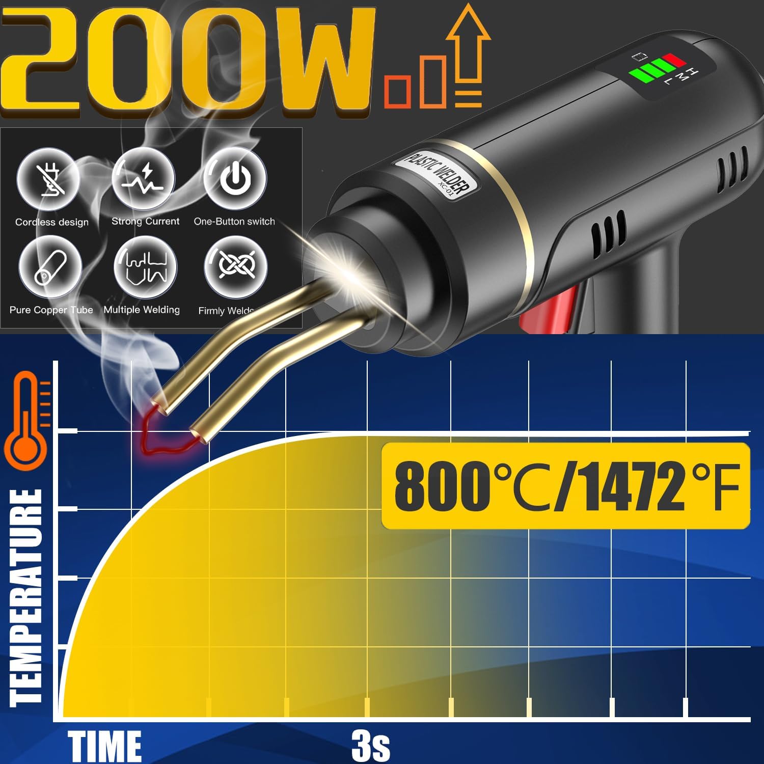 - 200W Schnelle Erwärmung: Unsere Kunststoffschweissmaschine wird mit einem 200W Hochleistungsmotor hergestellt. Das 200W Kunststoffschweissgerät hat einen höheren Ausgangsstrom und eine schnellere Heizgeschwindigkeit, mit einer maximalen Heiztemperatur